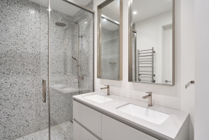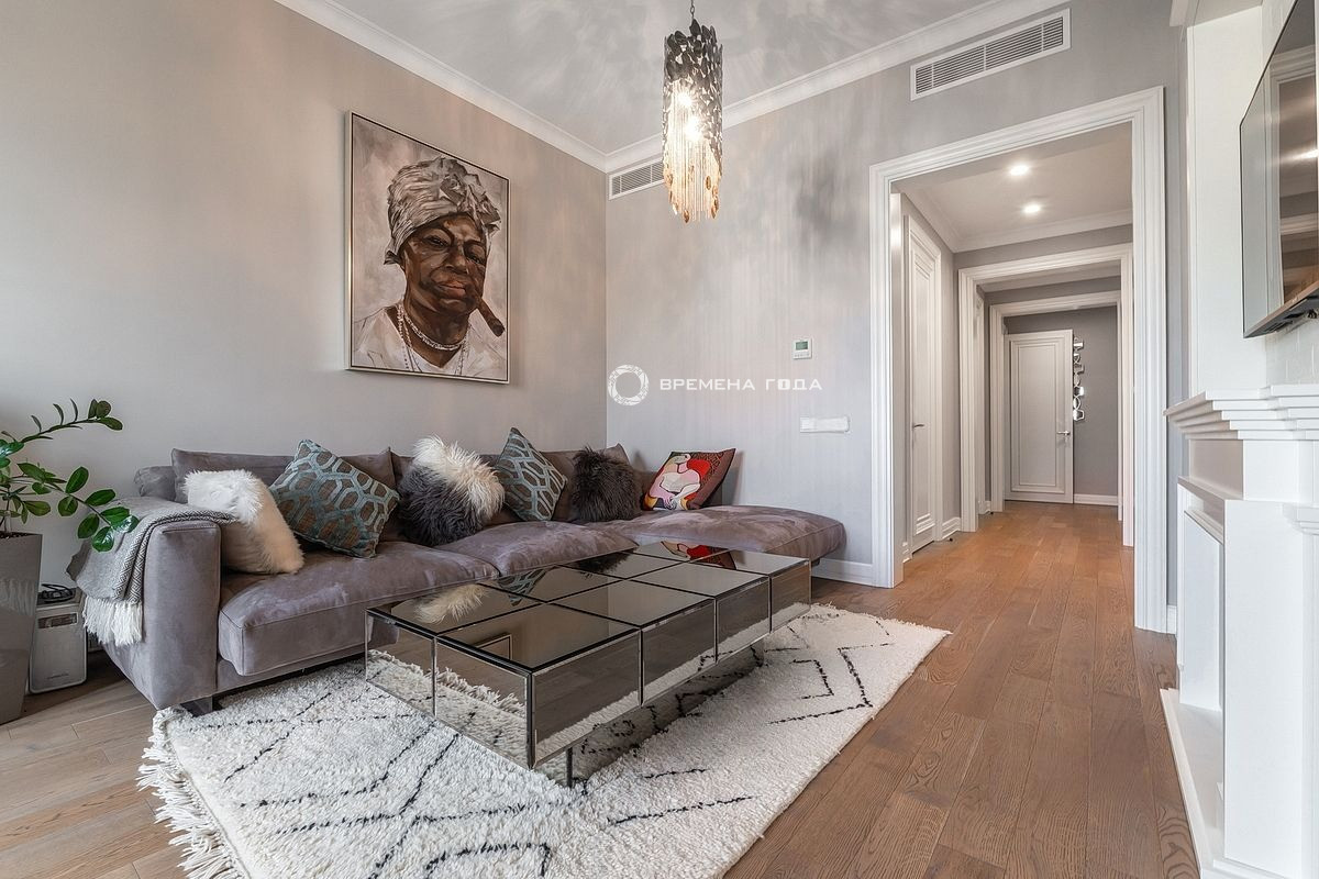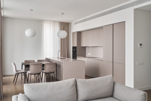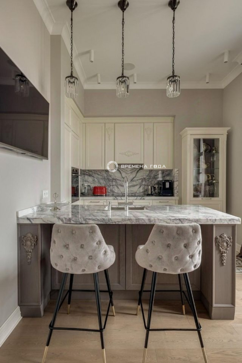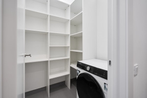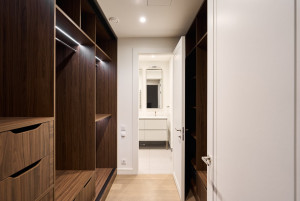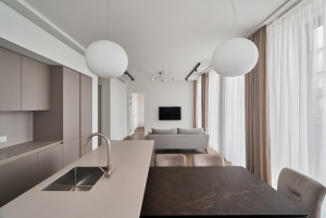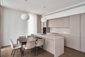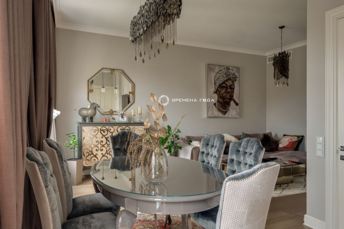 Планировочное решение: кухня с обеденной зоной и гостиной, две спальни, два санузла, гардеробная и постирочная комнаты