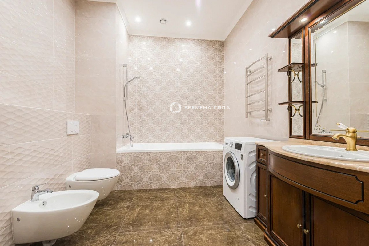 Выполнен дизайнерский ремонт с использованием высококачественных материалов. Квартира оснащена всей необходимой бытовой техникой премиальных брендов.
