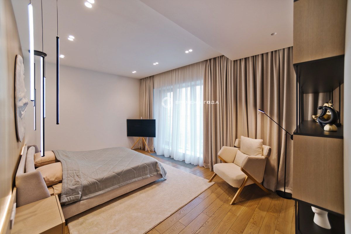 Планировочное решение: кухня с обеденной зоной и гостиной, мастер-спальня со своим санузлом и гардеробной комнатой, , гостевой санузел, постирочная, гардеробная при входе.