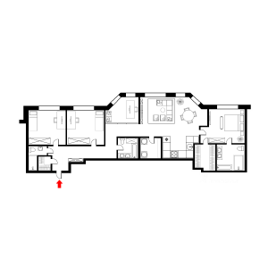 Планировочное решение: кухня-столовая-гостиная, спальня, детская комната, гардеробная комната, 2 санузла.
