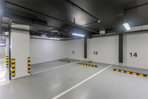 Первый уровень паркинга полностью приспособлен под кладовые помещения. На втором уровне расположен паркинг на 475 автомобилей. Также оборудованная собственная автомобильная мойка.