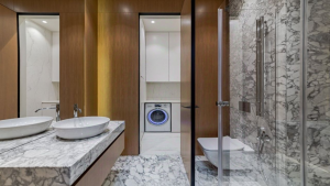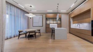 Планировочное решение: кухня – столовая, гостиная, изолированная комната, три санузла, холл.