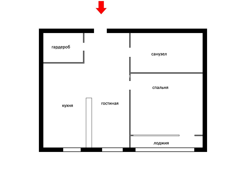 Планировочное решение: кухня-столовая-гостиная, спальная комната, санузел.