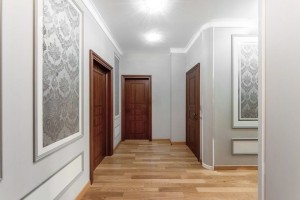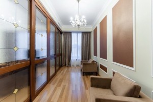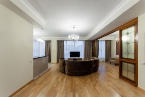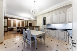 Отделка выполнена в благородном стиле современной классики с применением эксклюзивных материалов. В гостиной царит атмосфера утонченной роскоши, дополненная современной, полностью оборудованной кухней.