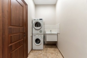 Продуманная до мелочей планировка являет собой гармоничное сочетание комфорта и функциональности: просторная гостиная, плавно перетекающая в кухню-столовую, приватная спальня с собственной ванной комнатой и вместительной гардеробной, вторая уютная спальня с ванной, элегантный кабинет, гостевой санузел, практичная прачечная и еще одна гардеробная комната.