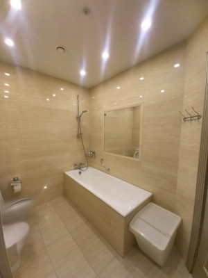 Большая удобная ванная комната 13,89м2, с просторным душем, ванна на 535 литров с воздушным и гидро массажем, а так же турбомассажем и подводной подсветкой для хромотерапии.