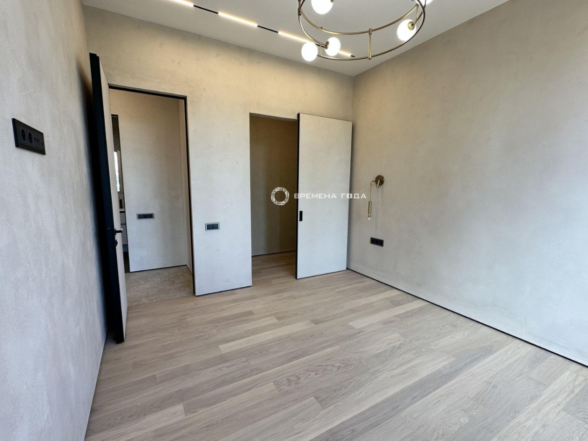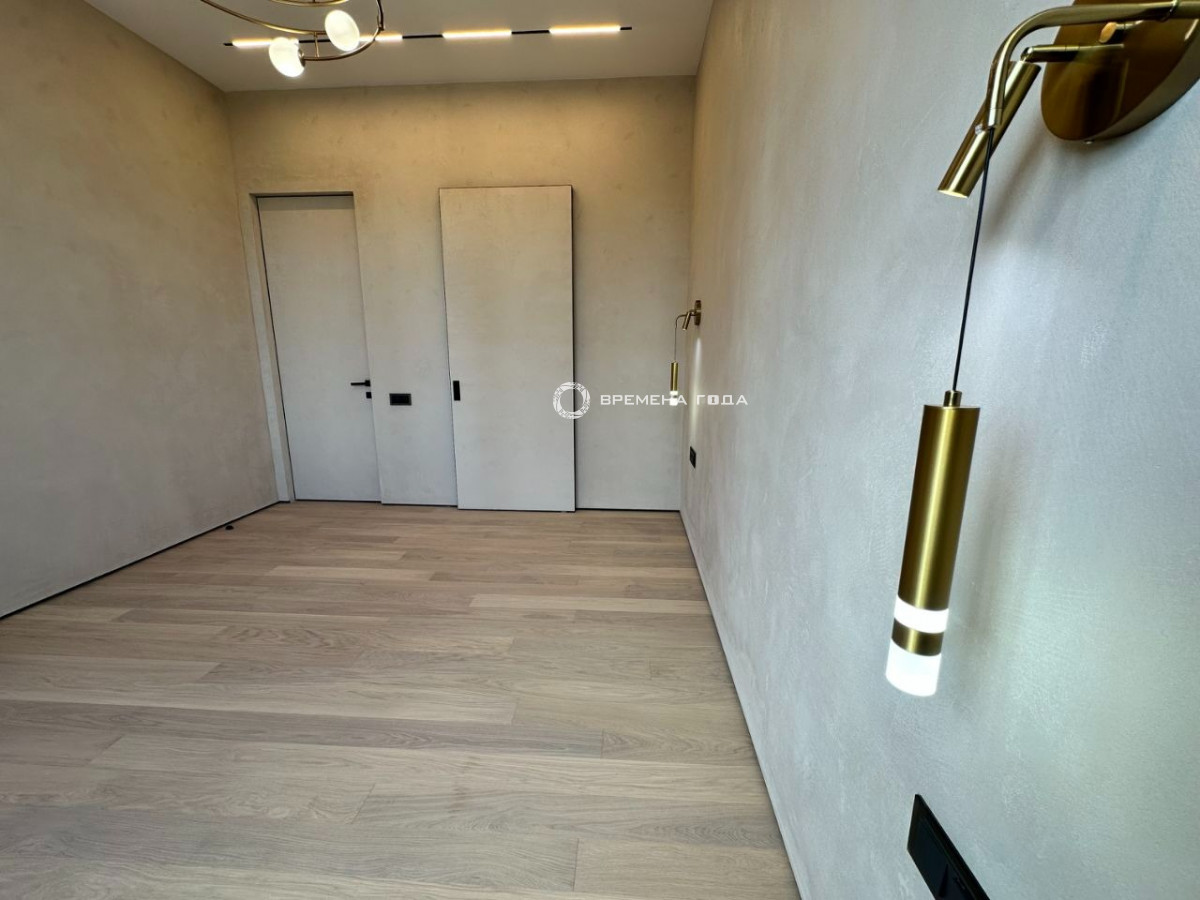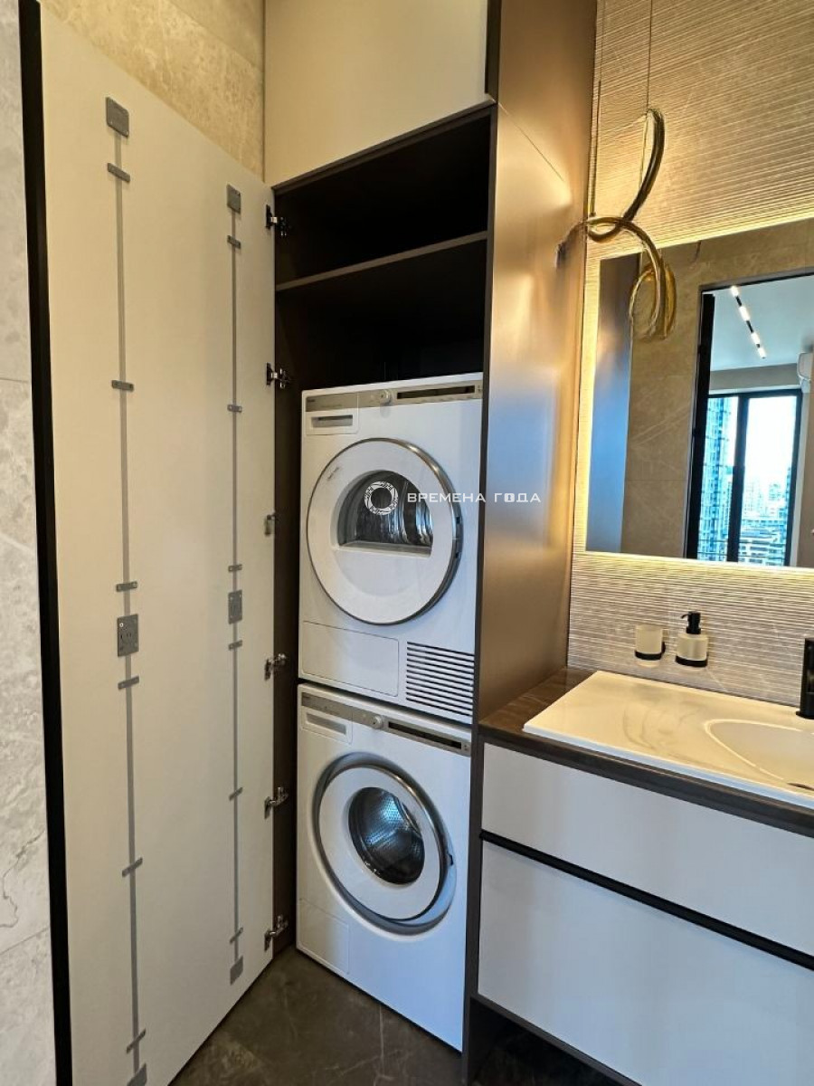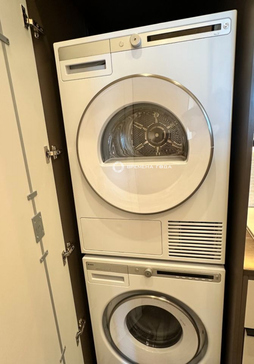 Планировочное решение: Просторная кухня-гостиная с панорамным видом, спальня расчитана, чтобы установить большую кровать, а функциональная гардеробная позволит удобно разместить все вещи. Совмещенный санузел с большой душевой кабиной. Есть постирочная зона с техникой Asko.