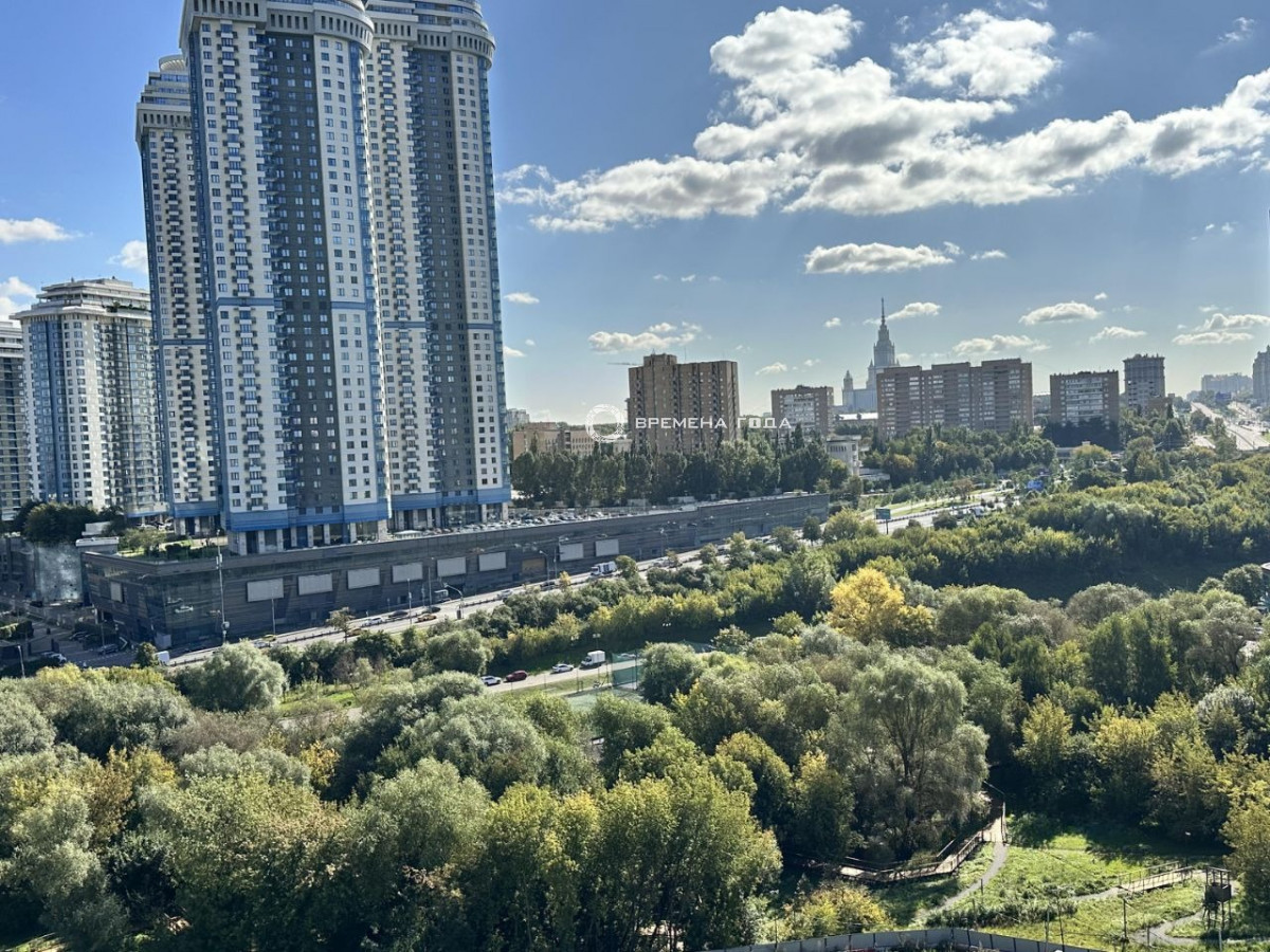 Вид в сторону центра Москвы и на парковую зону с речкой Раменкой.