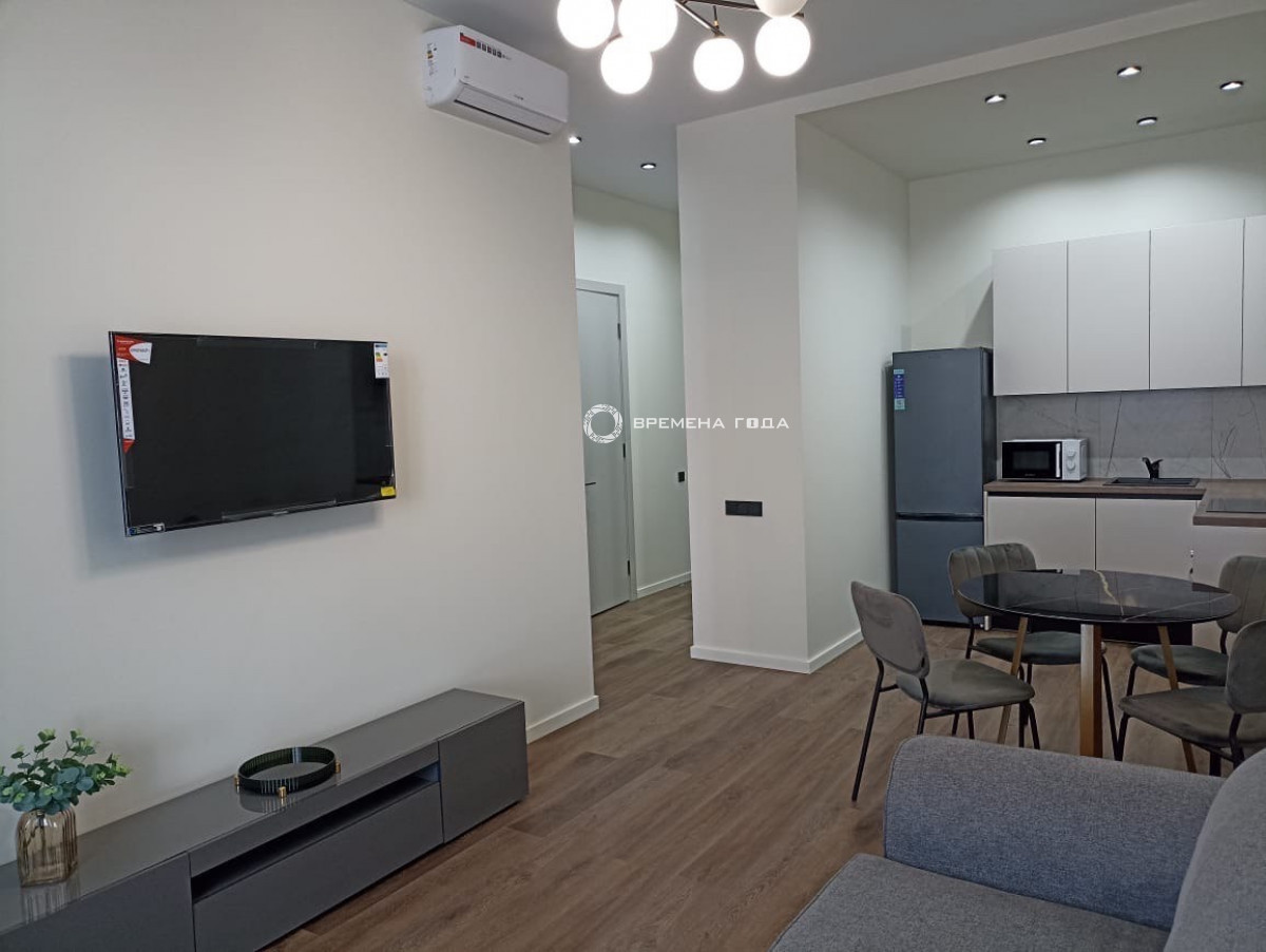 Планировочное решение: кухня с обеденной зоной и гостиной, изолированная спальня, санузел, прихожая