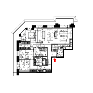 Пентхаус занимает этаж целиком, доступ осуществляется посредством собственного лифта.