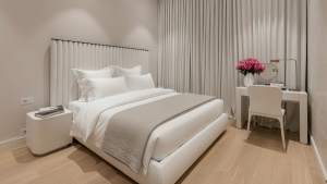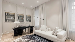 Площадь и количество окон позволяют спланировать: просторную гостиную-столовую с выделенной зоной кухни, мастер-блок с санузлом и гардеробной, 2 спальни с собственными санузлами и гардеробной, кабинет, гостевой санузел, пространства для хранения.