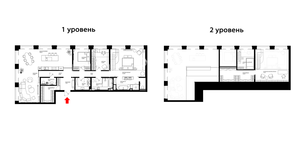 За счет высоты потолков (5,5 метров) возможно возведение антресольного этажа.