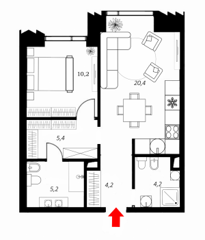 ОПИСАНИЕ КВАРТИРЫ - 1 ЭТАЖ, 40.2 КВ.М.