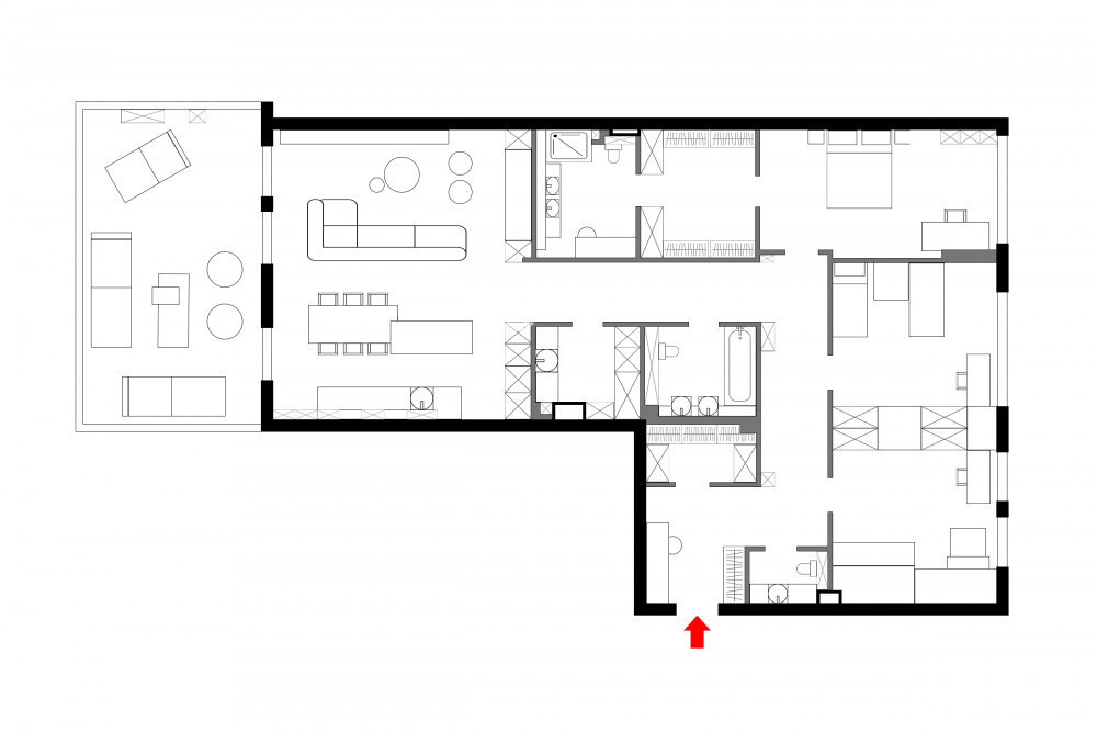 Квартира оснащена встроенной мебелью по индивидуальному заказу, бытовая техника Miele, Liebherr, сантехника TECE CISAL