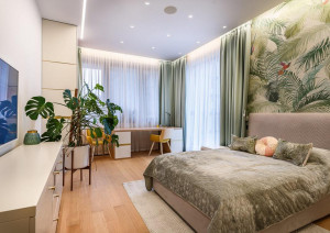 Возможный вариант планировки: кухня с обеденной зоной, гостиная, три мастер-спальни со своим санузлом и гардеробной комнатой каждая, изолированная спальня, гостевой санузел, постирочная, гардеробная комната, холл.