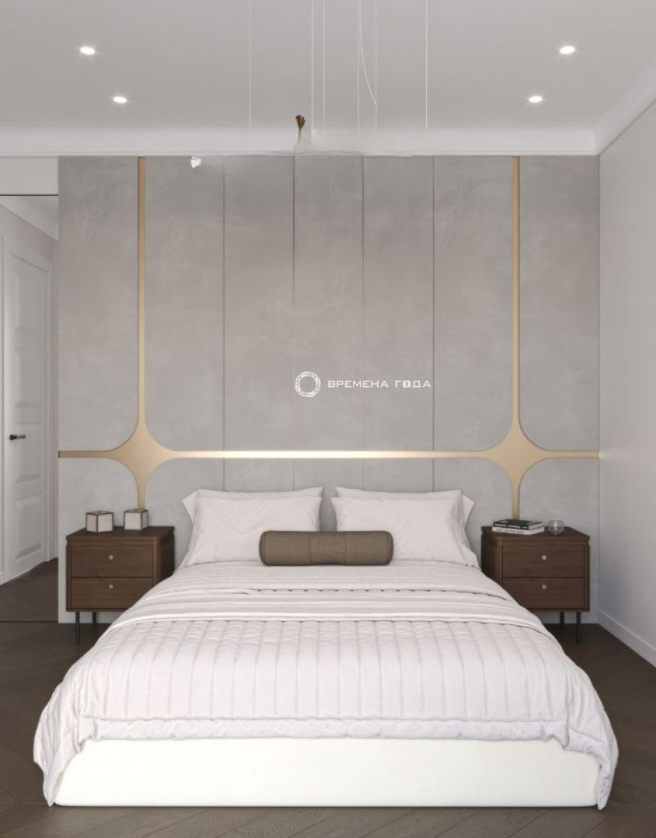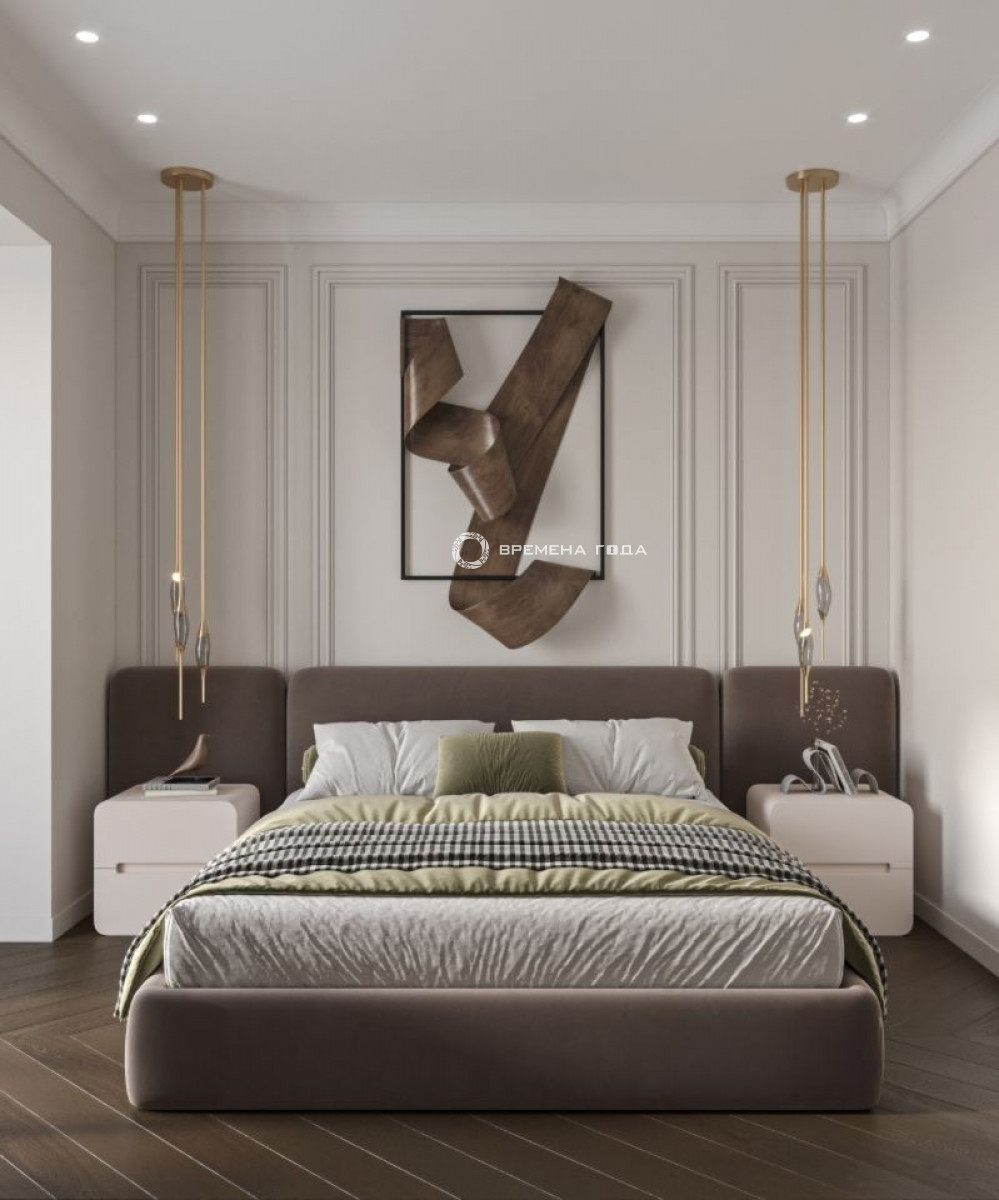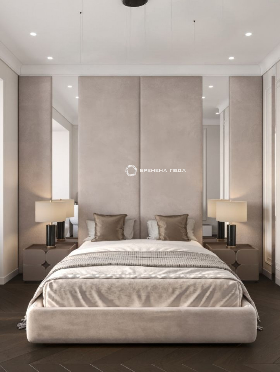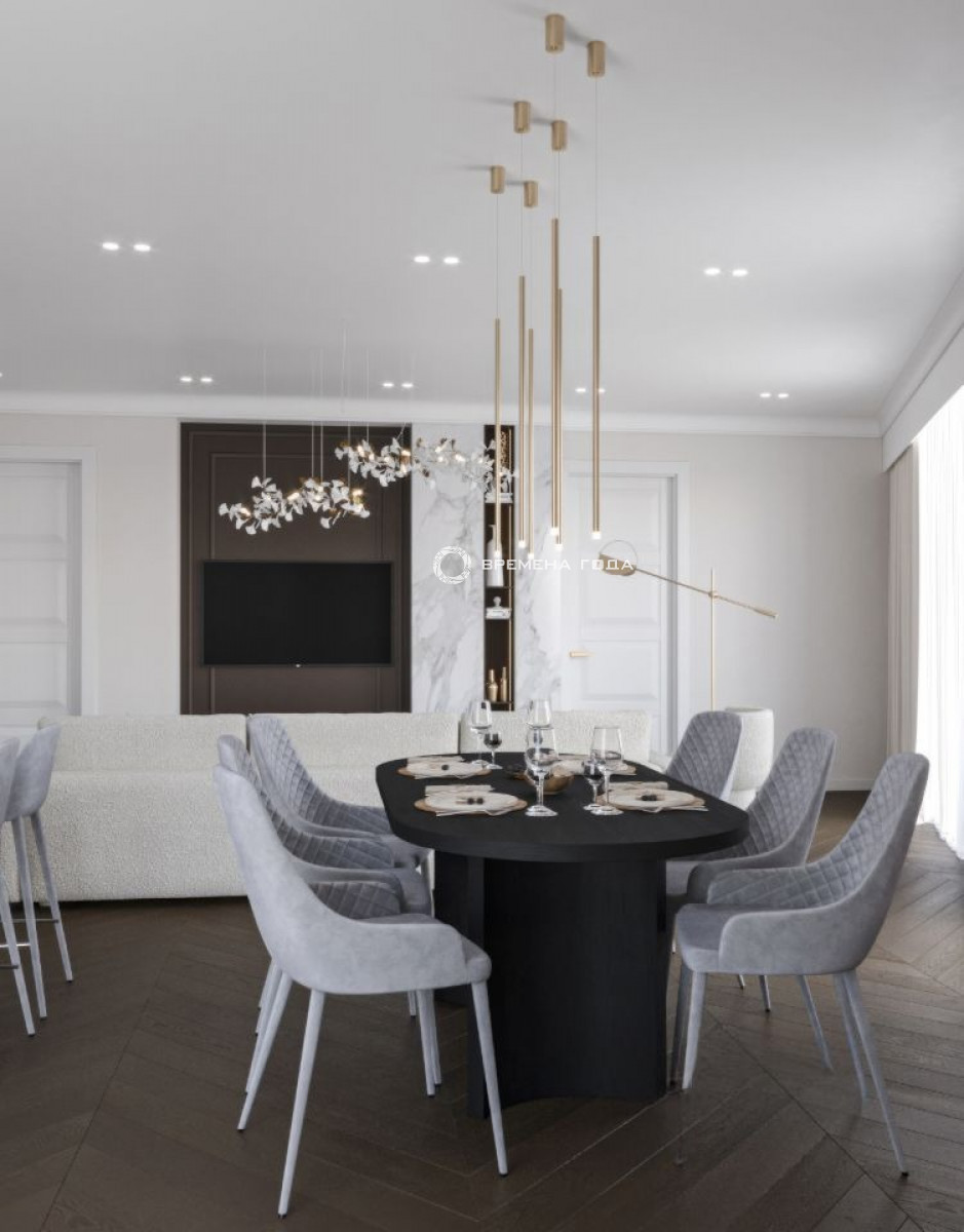 Планировочное решение: кухня с обеденной зоной и гостиной, спальня со своим санузлом, две спальни, гостевой санузел, прихожая, гардеробная.