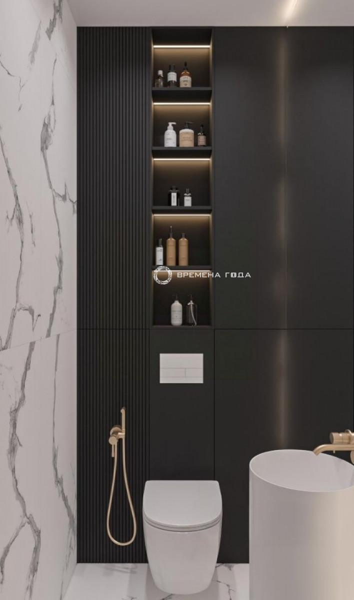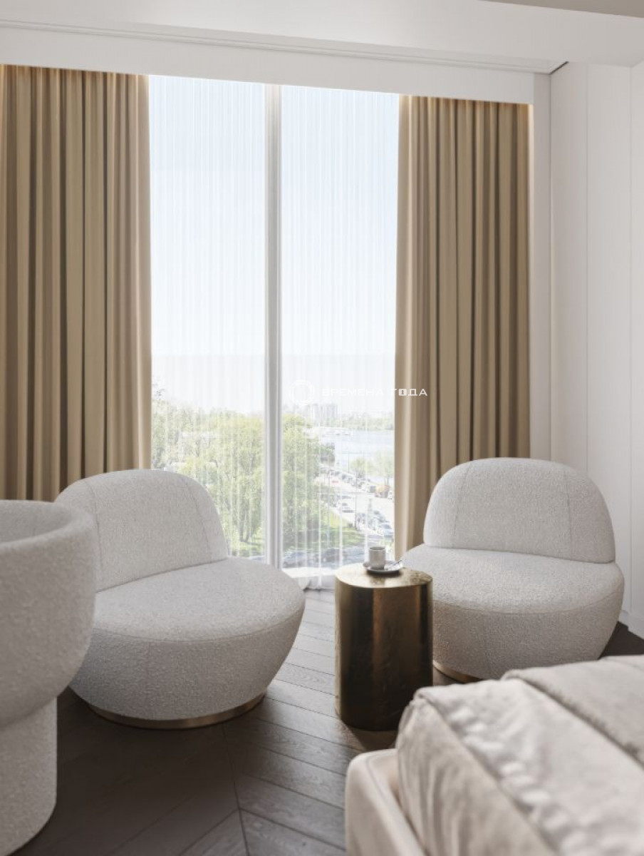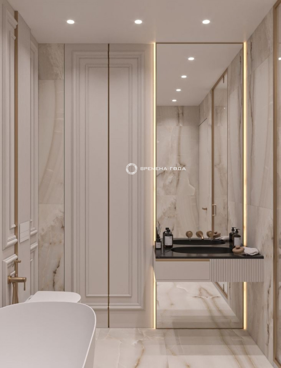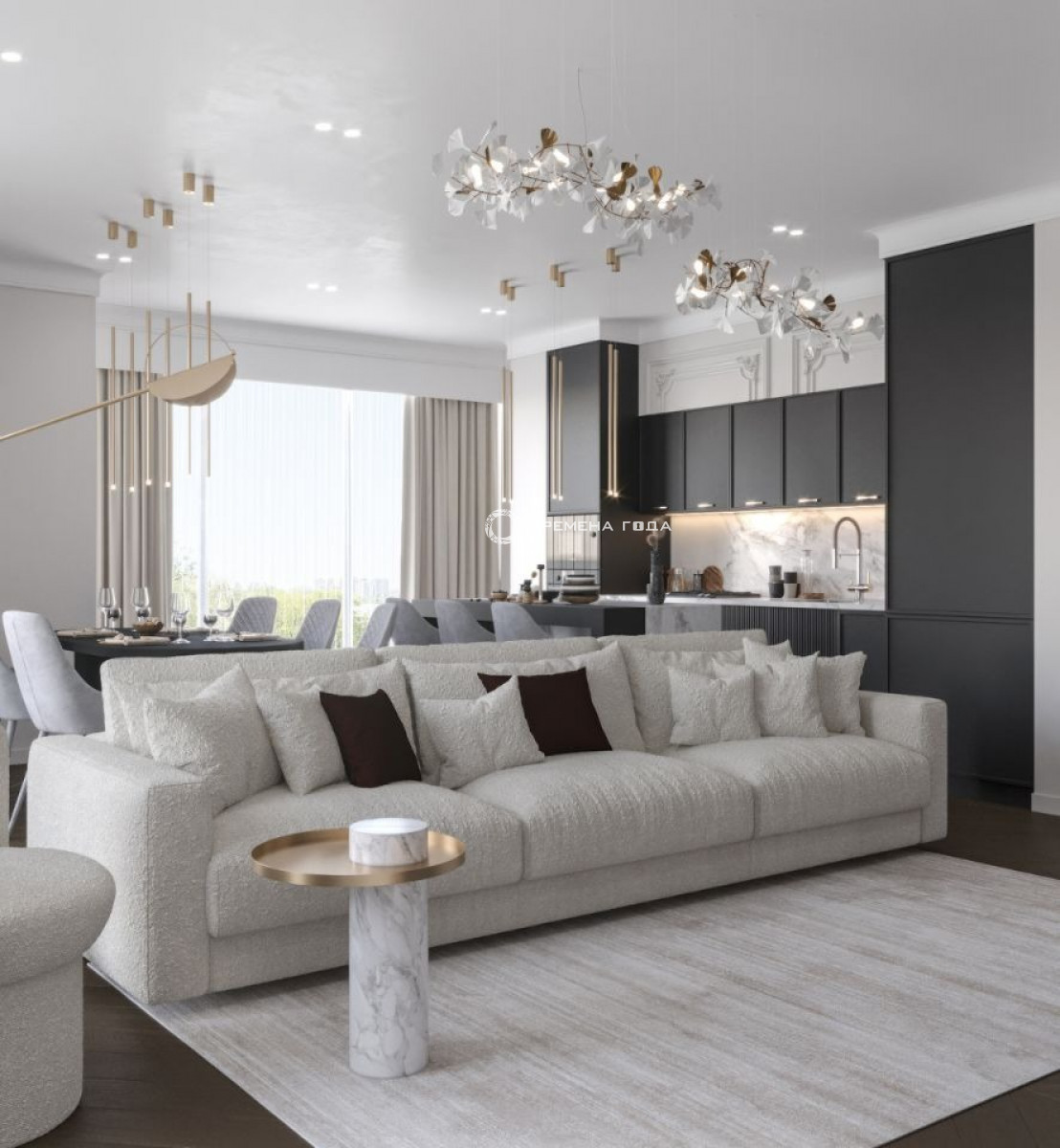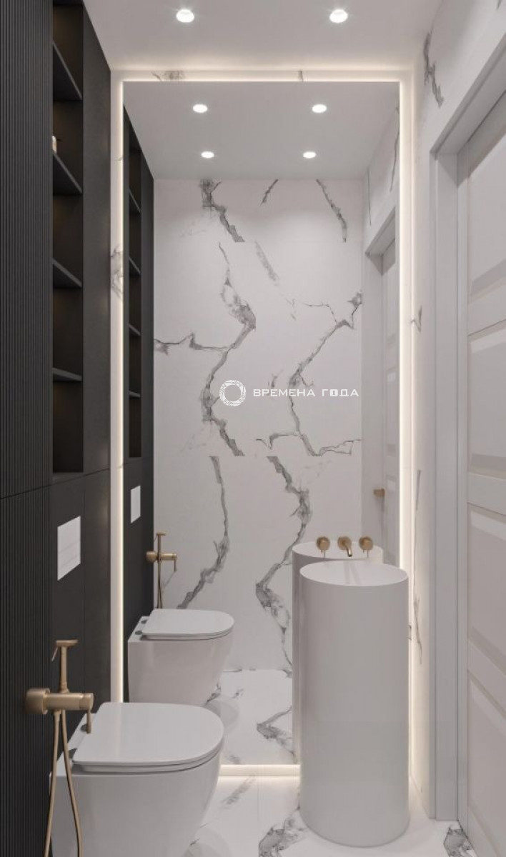 Планировочное решение: кухня с обеденной зоной и гостиной, спальня со своим санузлом, две спальни, гостевой санузел, прихожая, гардеробная.