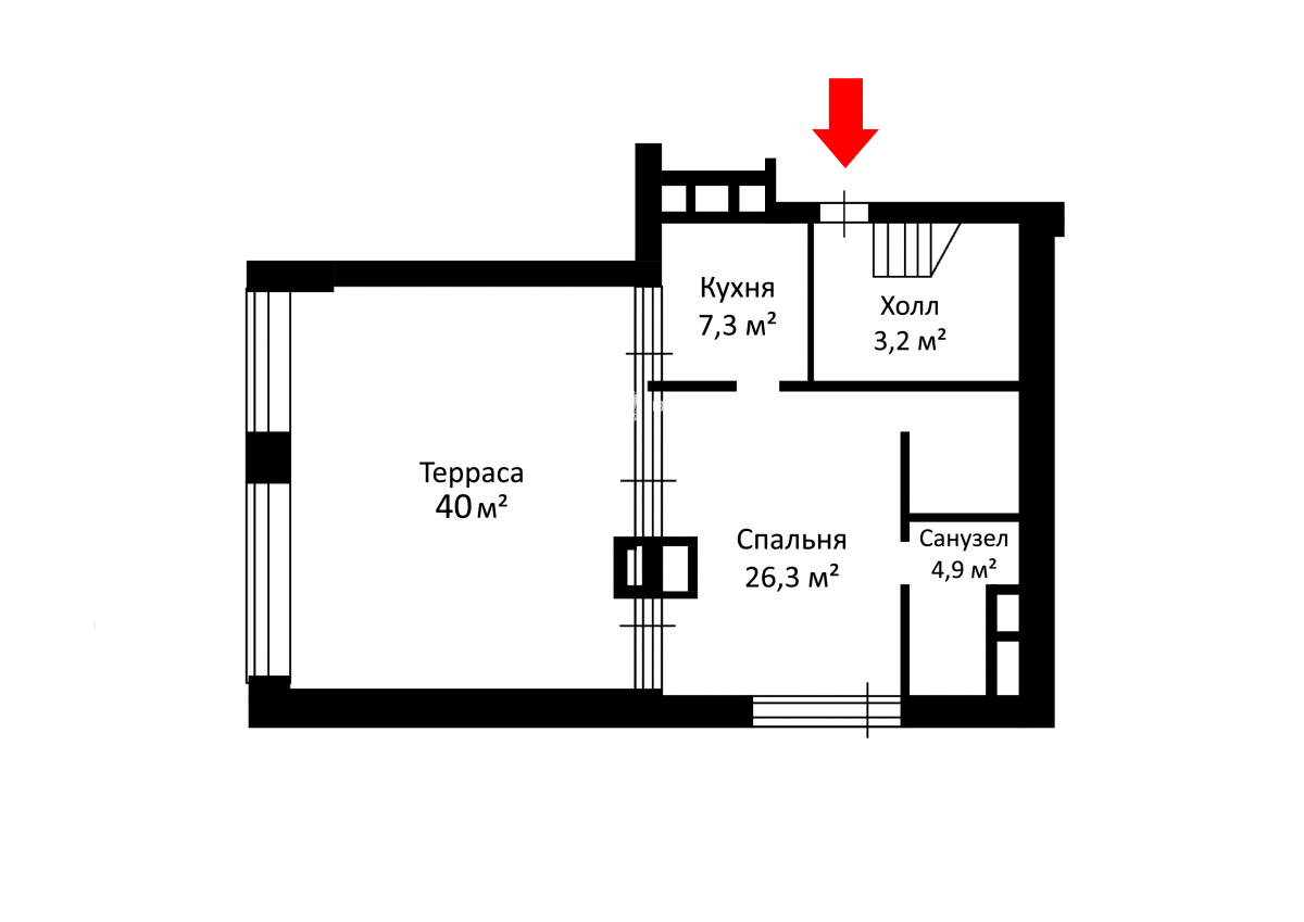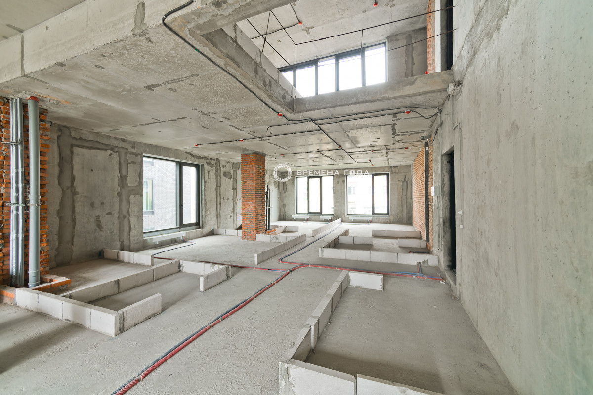 Свободная планировка. Стены в квартире не возведены. Два уровня.