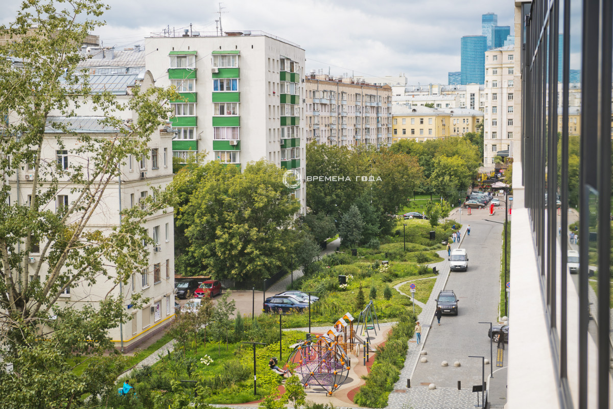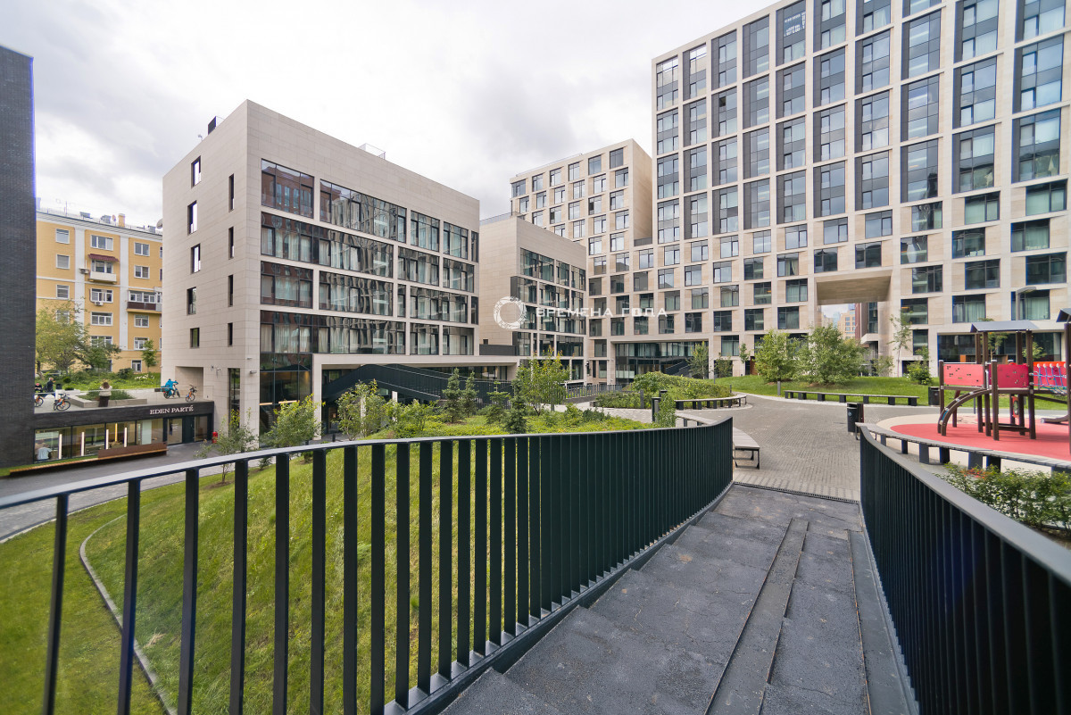 Вид во внутренний благоустроенный двор, соседний корпус и пешеходную улицу