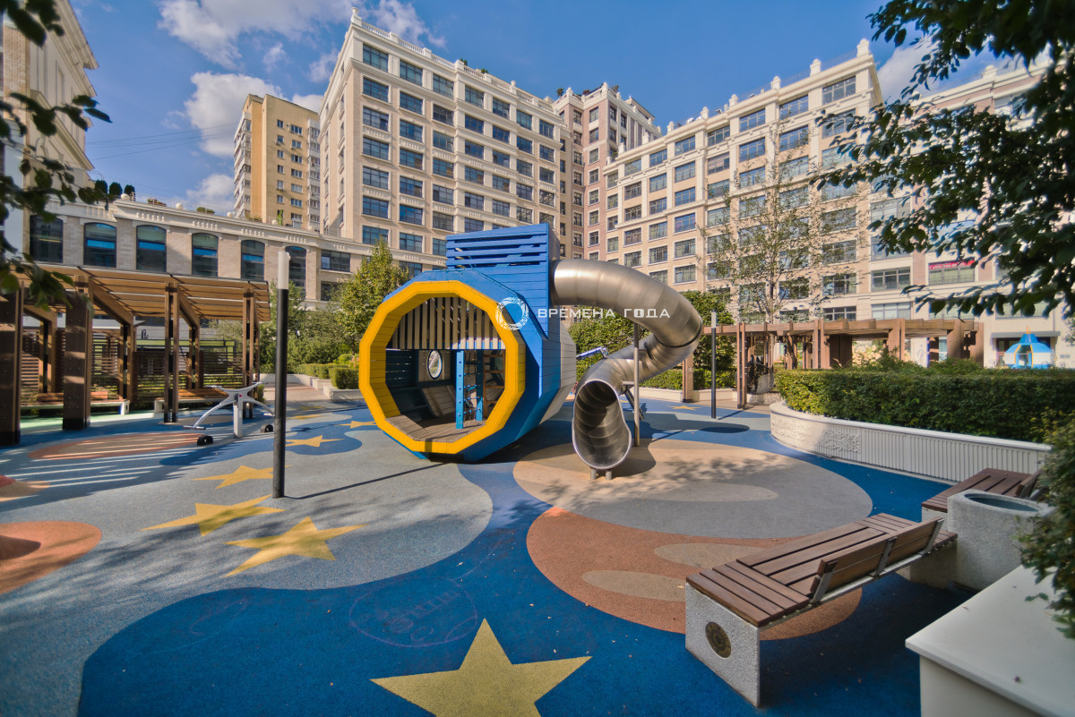 Придомовая территория абсолютно безопасна для отдыха. На территории внутреннего двора находится миниатюрный парк. Его главное украшение — фонтан. Парк расположен в окружении мест для отдыха детей и взрослых, спортивных площадок.