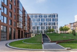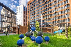 На закрытой для доступа посторонних придомовой территории организовано максимально комфортное пространство для детей и взрослых. Здесь устроены игровые и спортивные площадки, масштабная прогулочная зоны, высажены зеленые насаждения, проложены велодорожки.