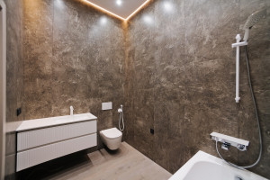 Планировочное решение: кухня с обеденной зоной и гостиной, мастер-спальня со своим санузлом и гардеробом, изолированная спальня, гостевой санузел, холл