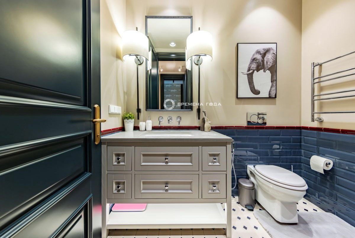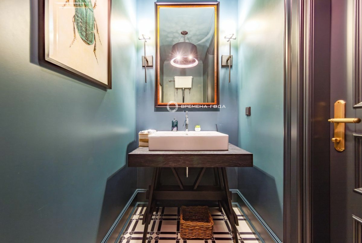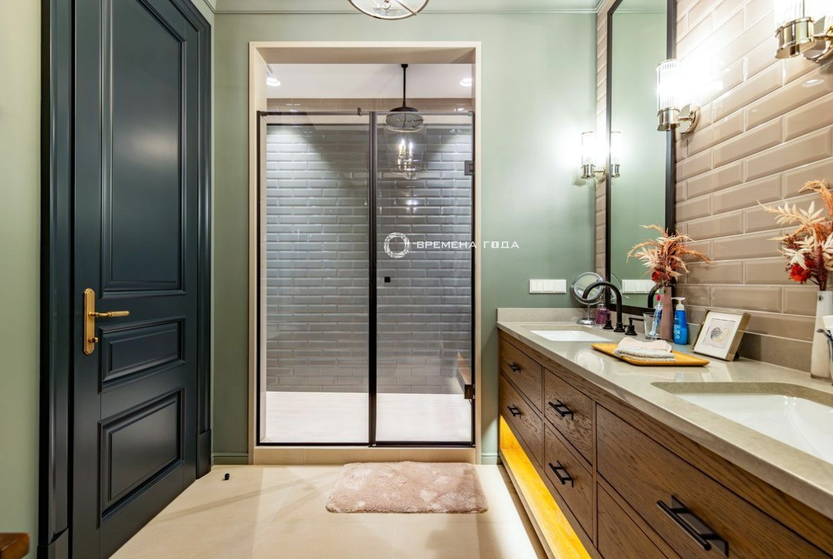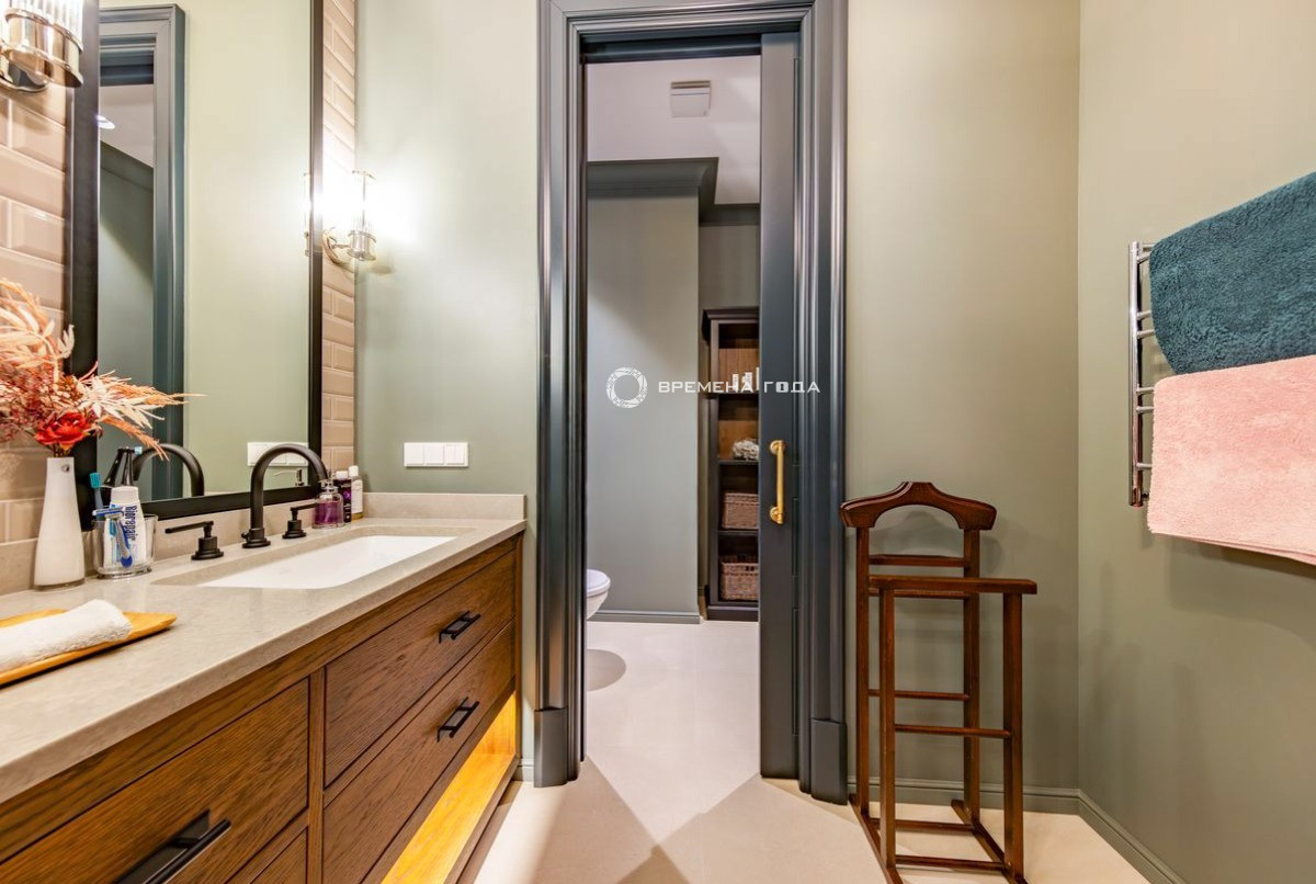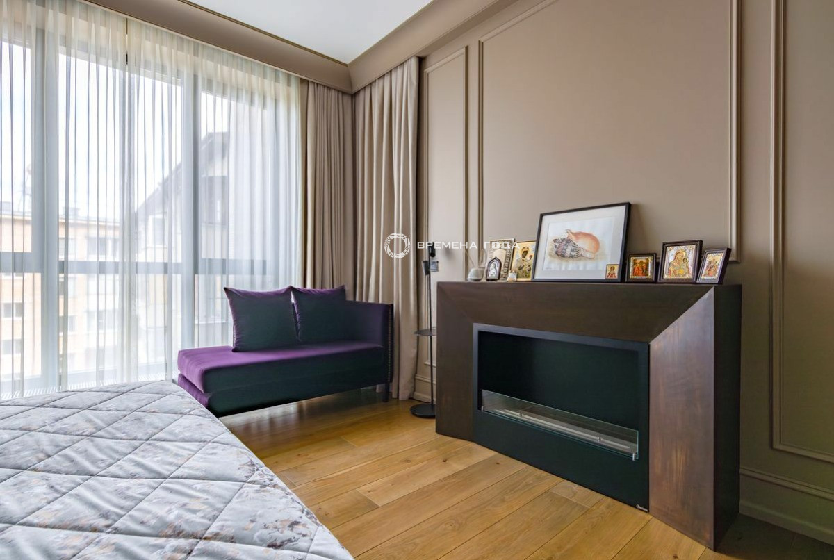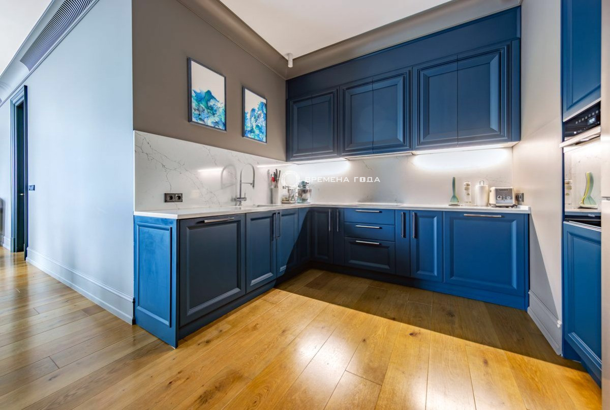 Планировочное решение: кухня с обеденной зоной и гостиной, три спальни, четыре санузла, гардеробная комната, холл.