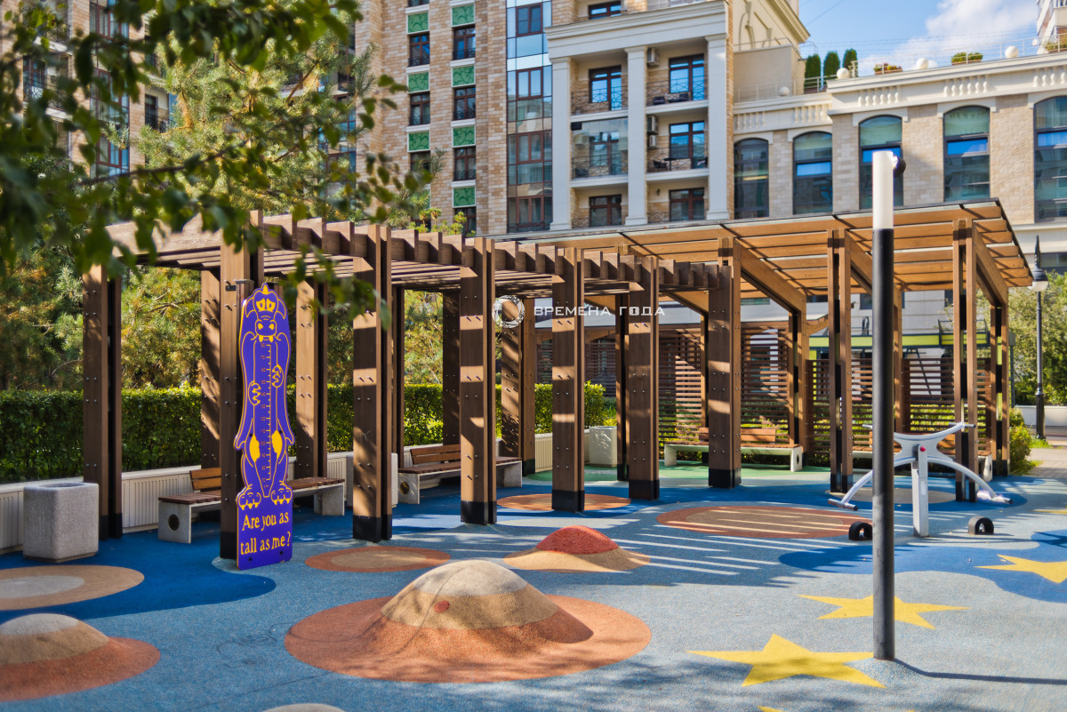 Придомовая территория абсолютно безопасна для отдыха. На территории внутреннего двора находится миниатюрный парк. Его главное украшение — фонтан. Парк расположен в окружении мест для отдыха детей и взрослых, спортивных площадок.