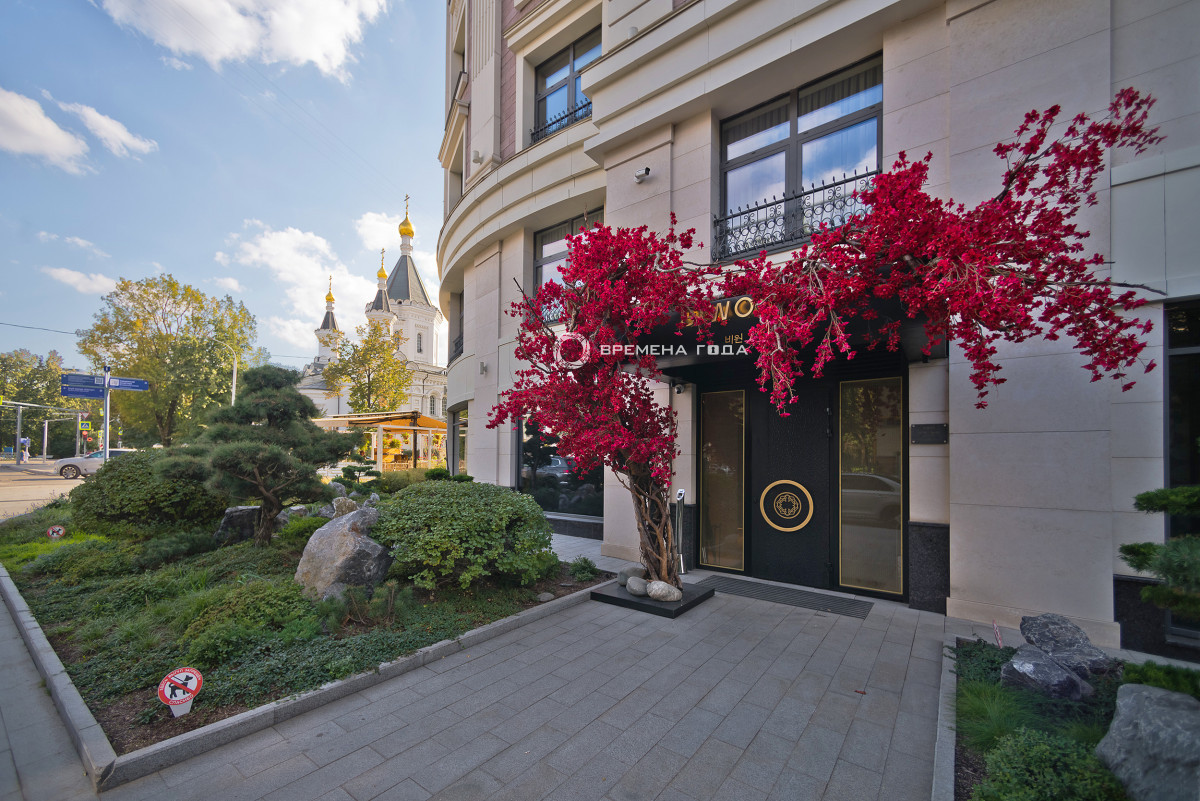 Придомовая территория благоустроена в единой архитектурной концепции. Установлены лавочки, разбит сквер с фонтаном. Непосредственно во дворе находятся устройства для зарядки мобильных телефонов и других гаджетов. Вся территория охвачена Wi-Fi.