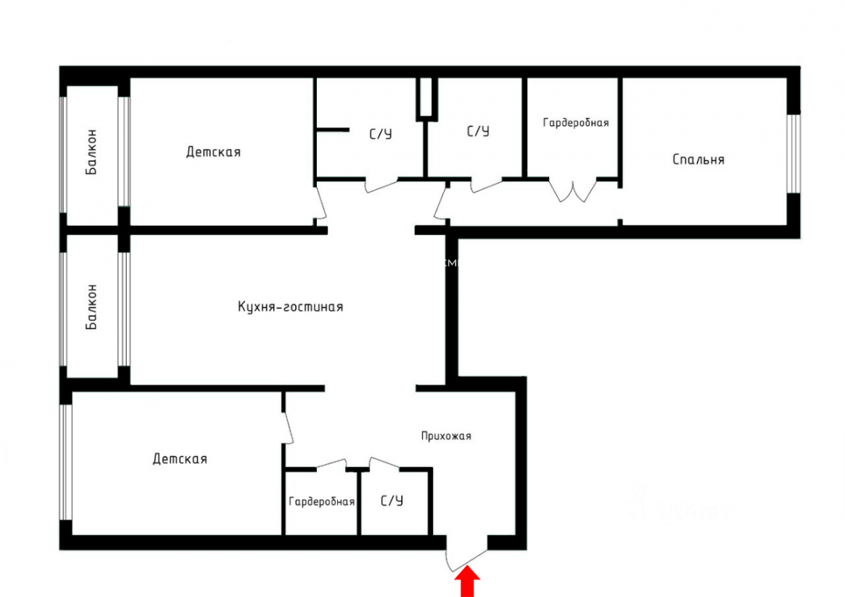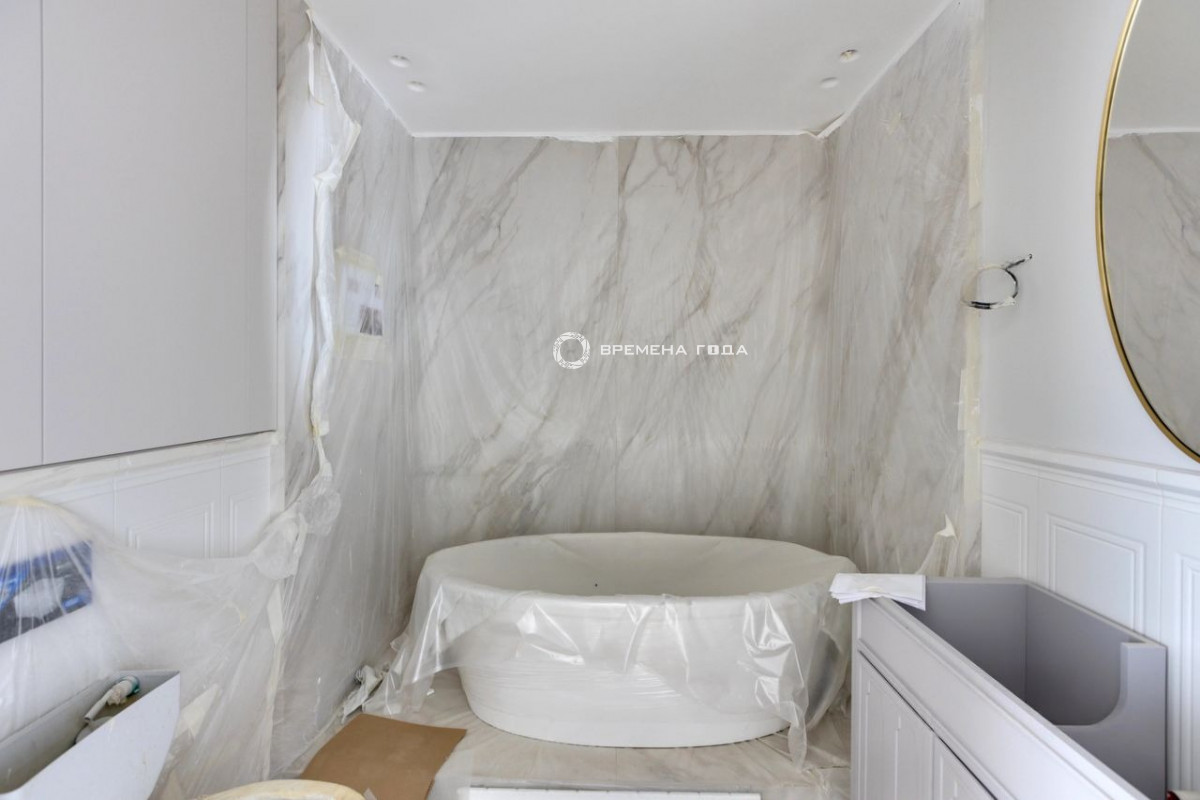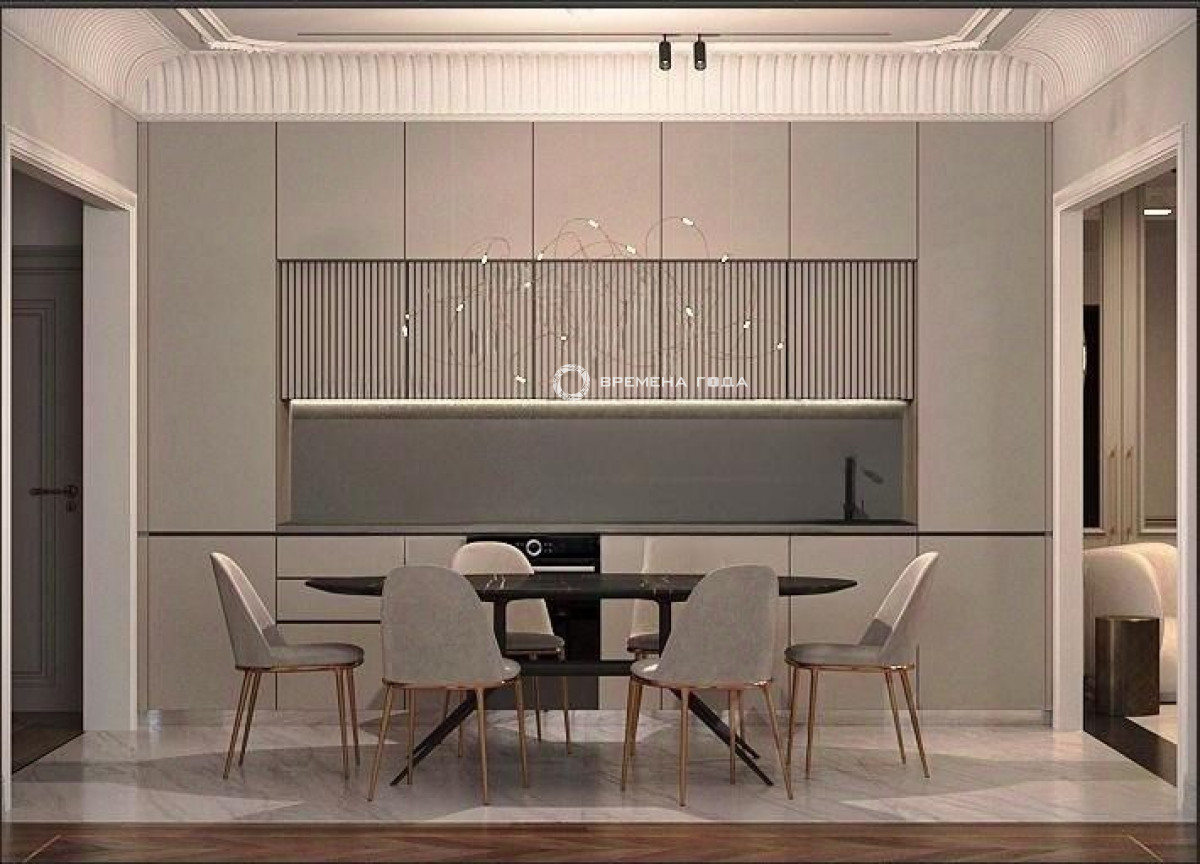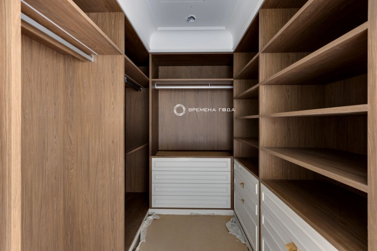 Планировочное решение: кухня-гостиная, столовая с застекленной лоджией, мастер-спальня со своим санузлом и гардеробной комнатой, спальня с санузлом и вместительной зоной хранения (шкафы), детская, гостевой санузел, постирочная, прихожая