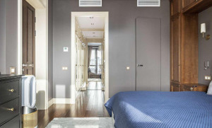 Планировочное решение: кухня с обеденной зоной и гостиной, спальня со своей гардеробной комнатой, детская комната, санузел с постирочной зоной, холл