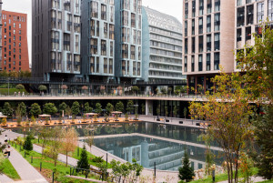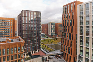 Вид на центральную зону с прудом и соседний корпус.