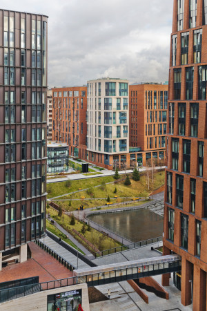 Комплекс находится под круглосуточной охраной. Все кварталы объединяются пешеходными мостиками.