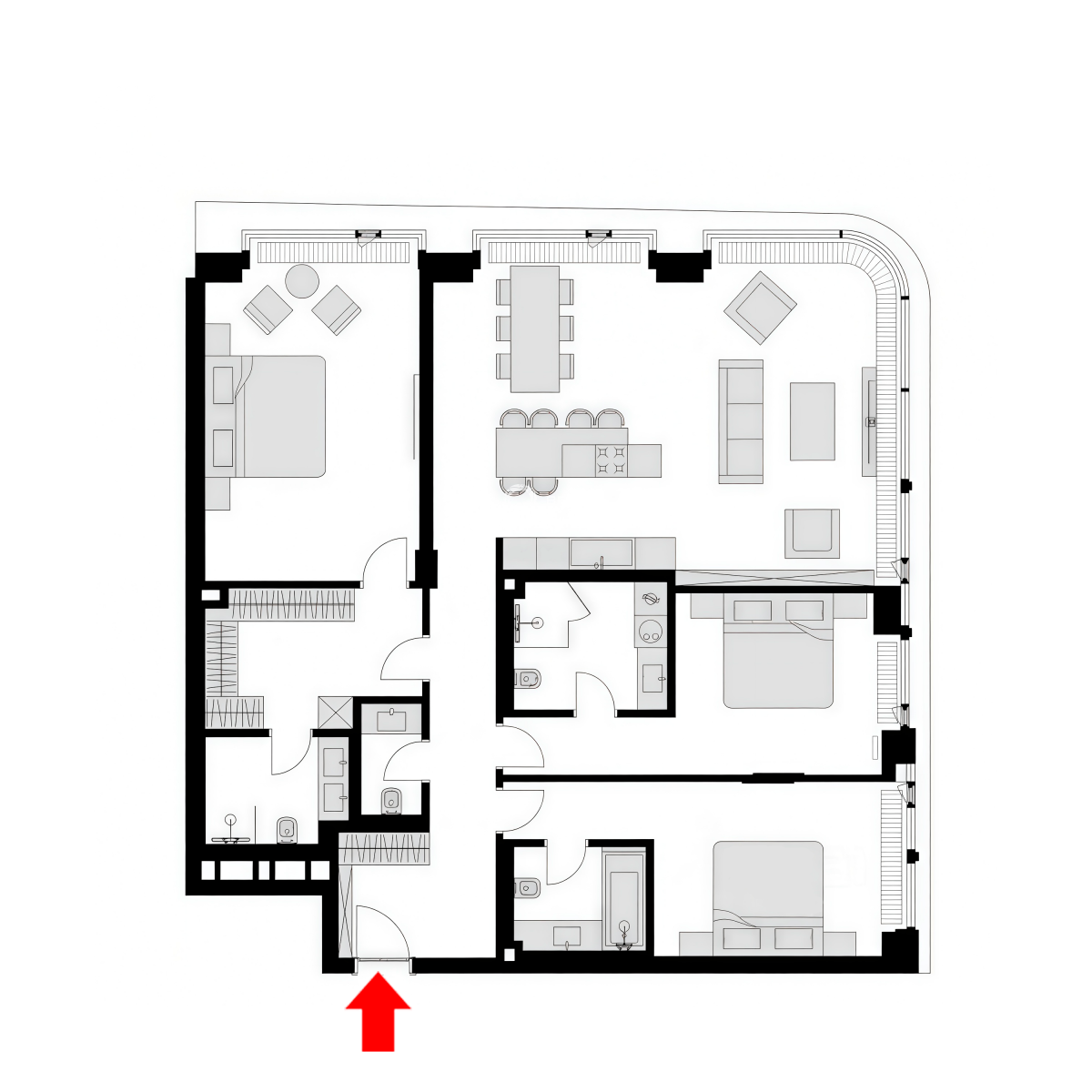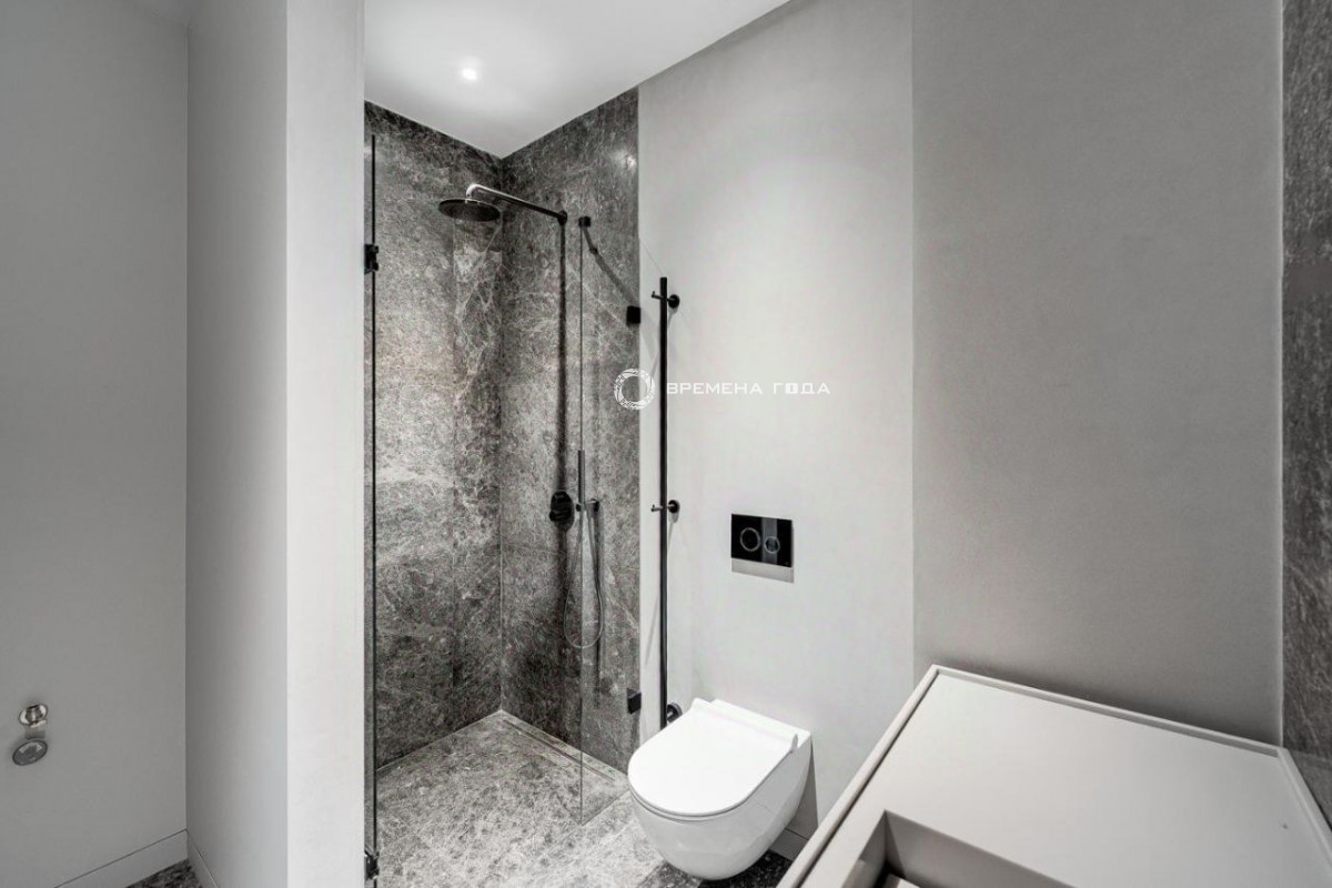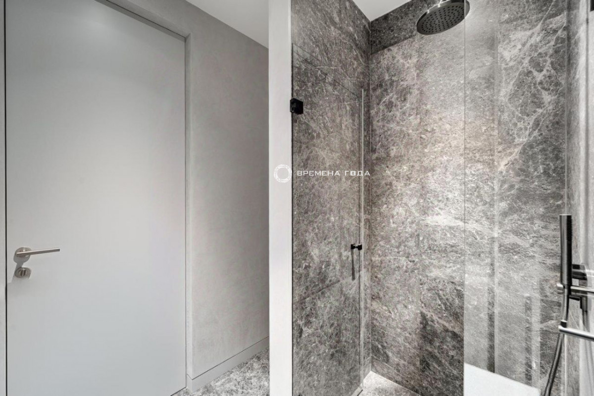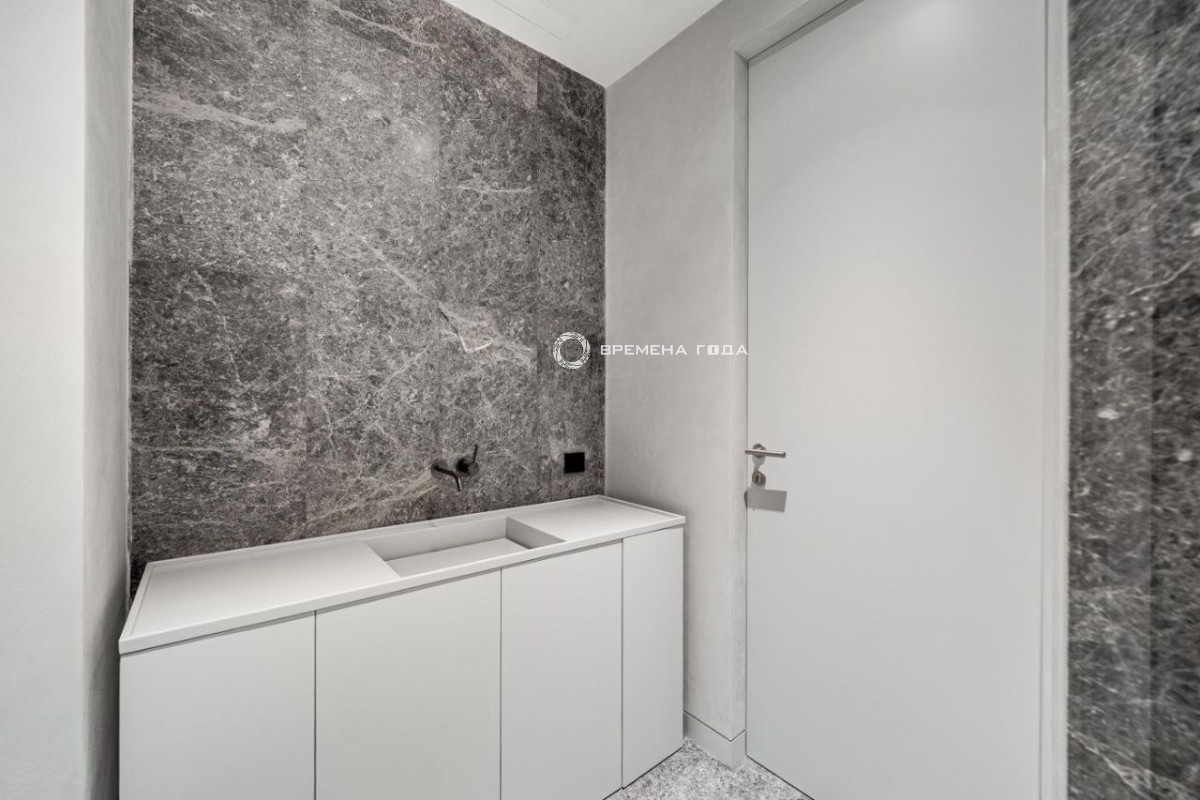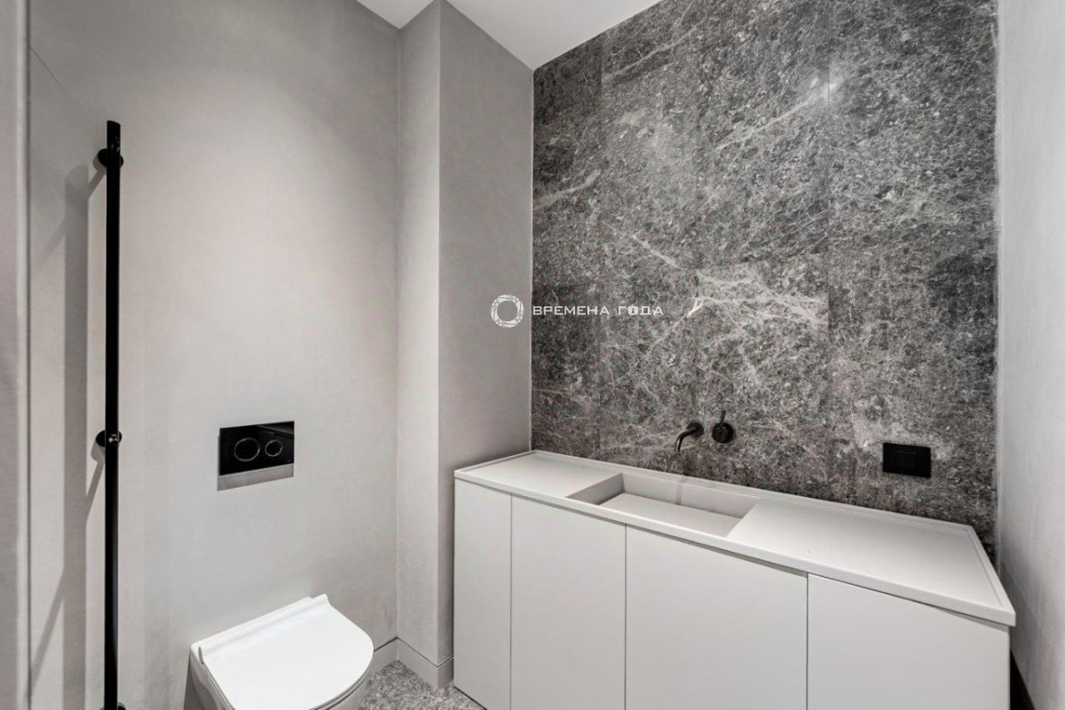 Планировочное решение: кухня с обеденной зоной и гостиной, три мастер-спальни со своим санузлом и гардеробной комнатой каждая, гостевой санузел, просторный холл с гардеробной зоной