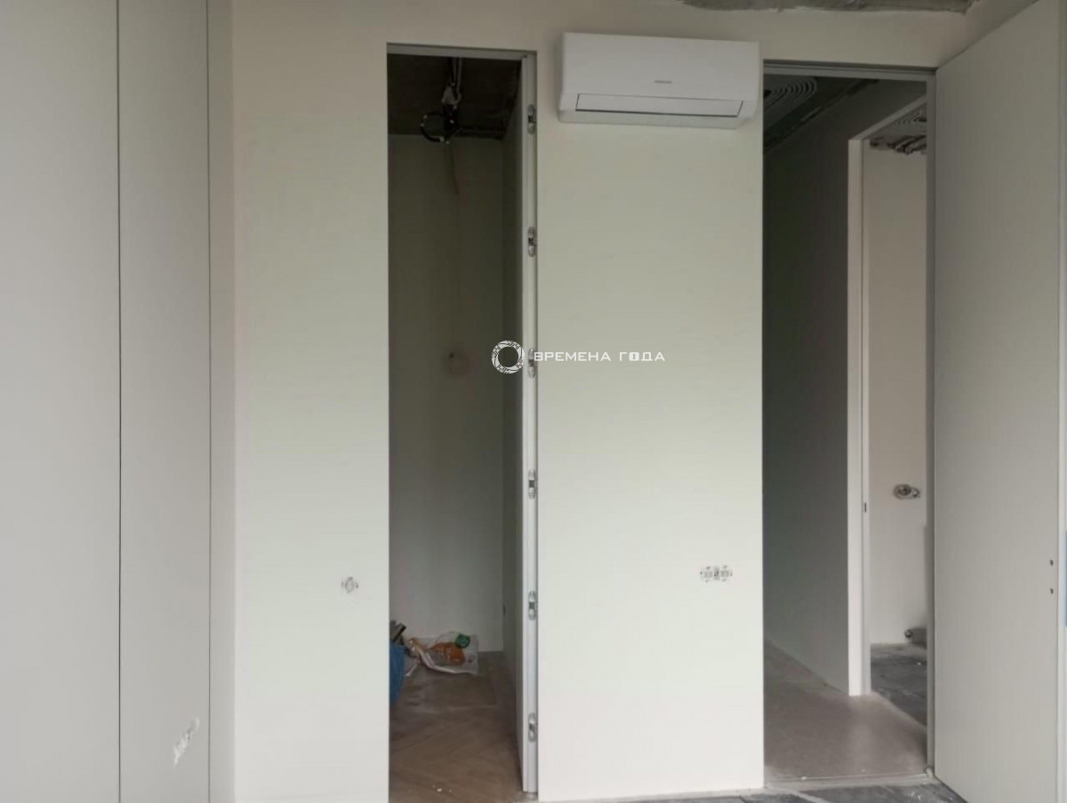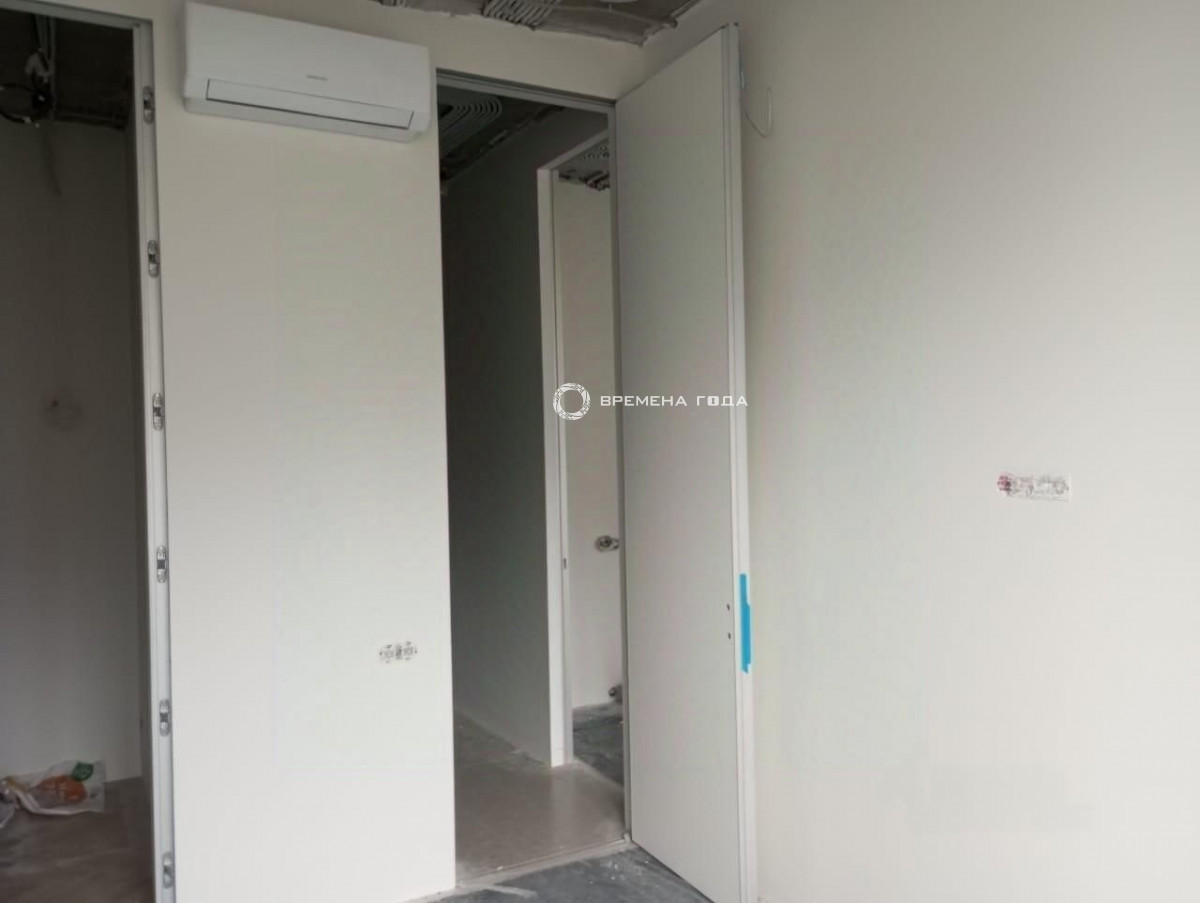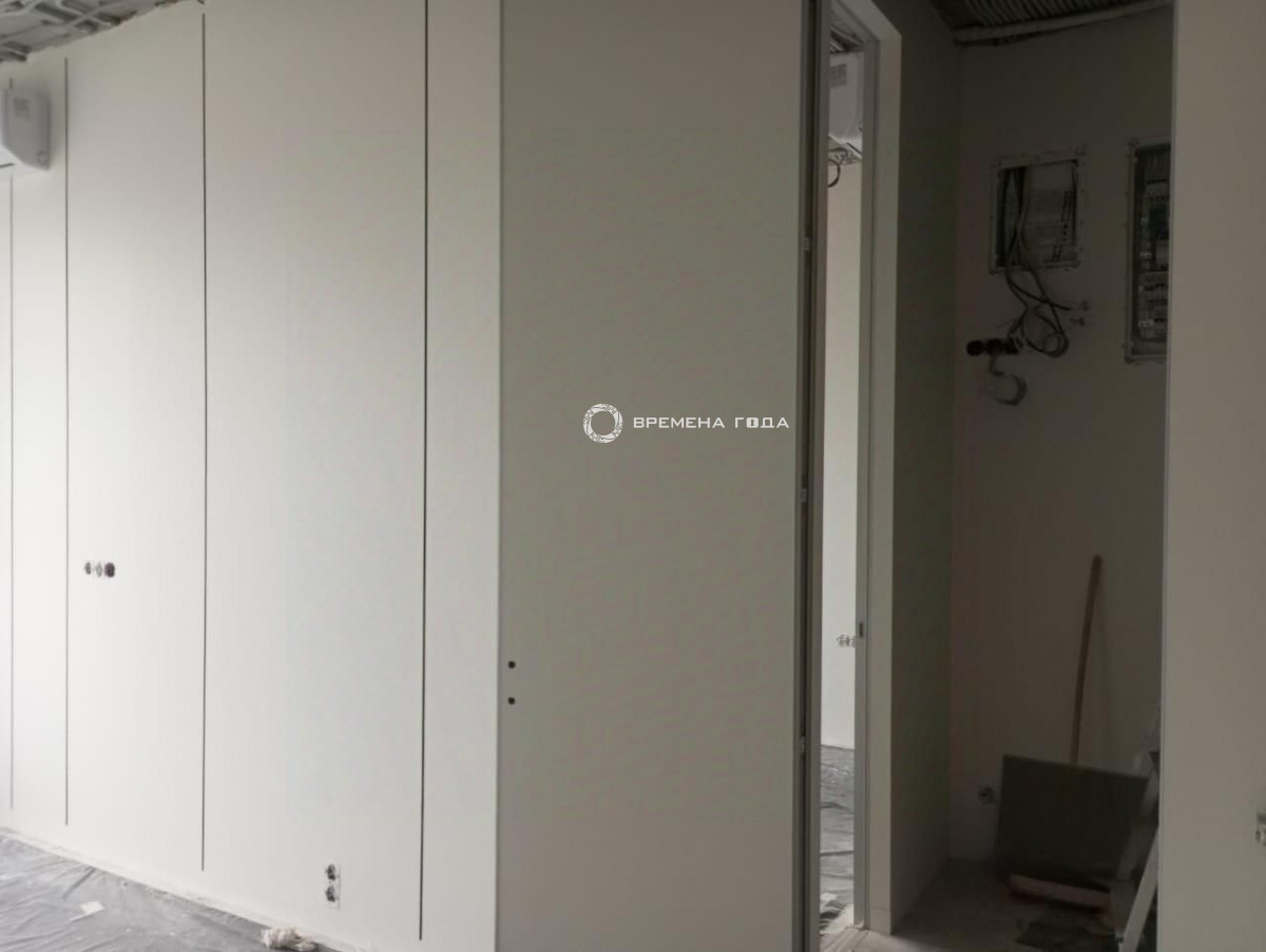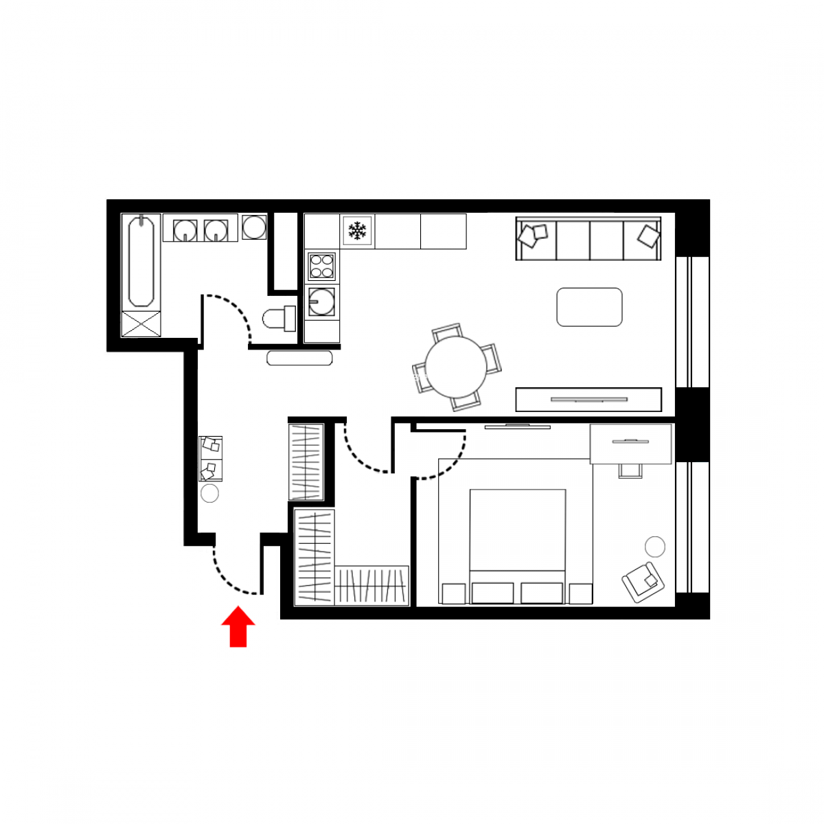 Планировочное решение: кухня с обеденной зоной и гостиной, изолированная спальня, гардеробная комната, санузел, прихожая.