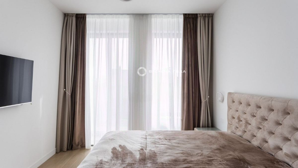 Квартира укомплектована современной мебелью, кухня оснащена встроенной бытовой техникой. Установлена система кондиционирования, стиральная и посудомоечная машина.