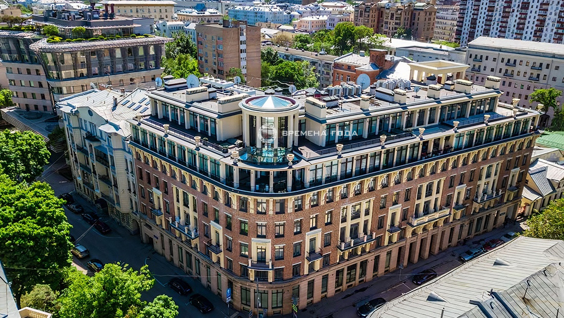 Одна из уникальных особенностей дома — роскошный бассейн с мозаичными панно на стенах, мраморными колоннами и окнами во двор. На первом этаже также размещены тренажерный зал, сауна, салон красоты. Подземный уровень здания занимает многоместный паркинг (30 м/м). Периметр территории обнесен оградой, установлено видеонаблюдение, введен пропускной режим.