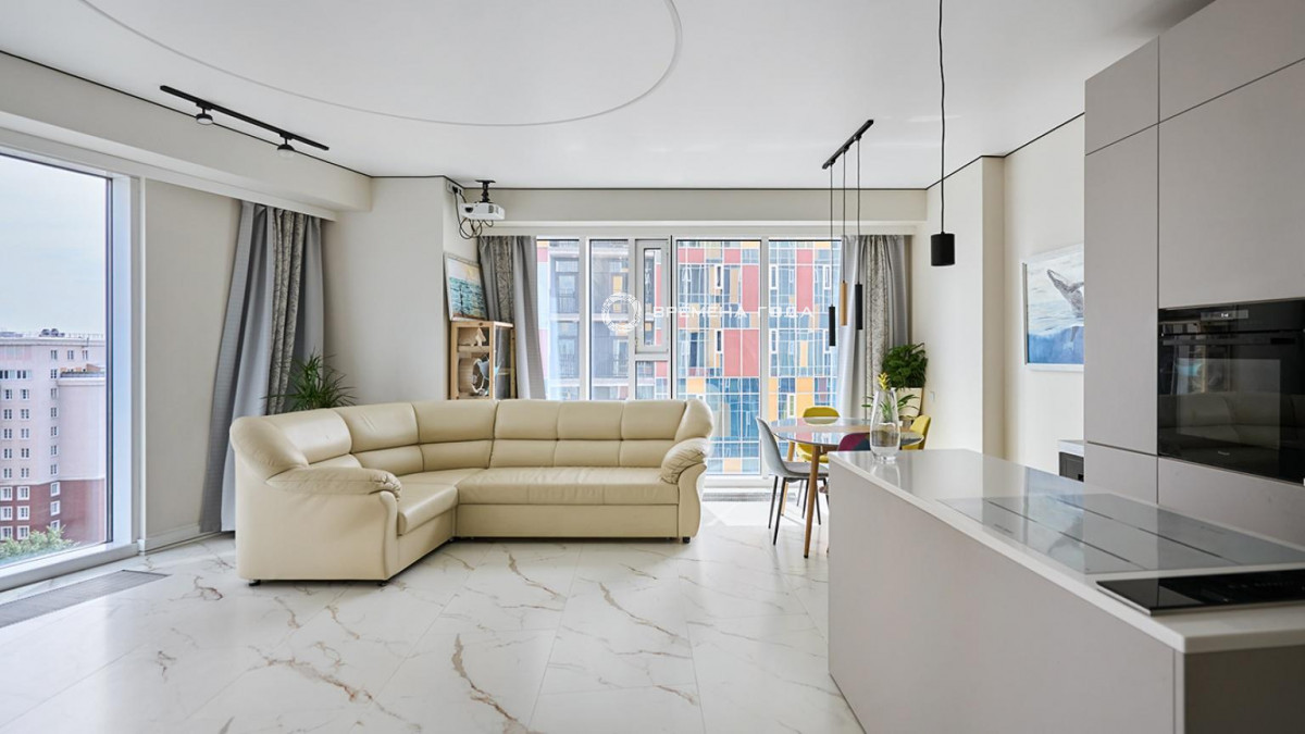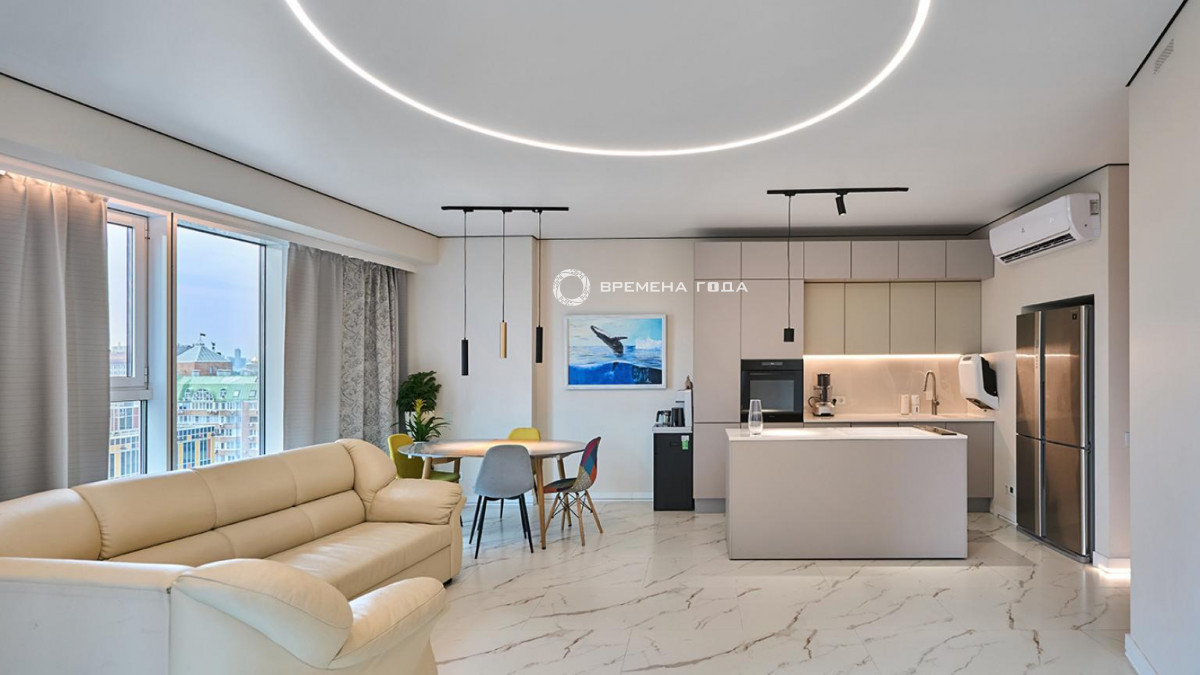 Планировочное решение: кухня-гостиная с угловыми панорамными окнами, Мастер-спальня с ванной комнатой и гардеробной, просторная детская, кабинет, ванная комната с душем, гостевой санузел, холл