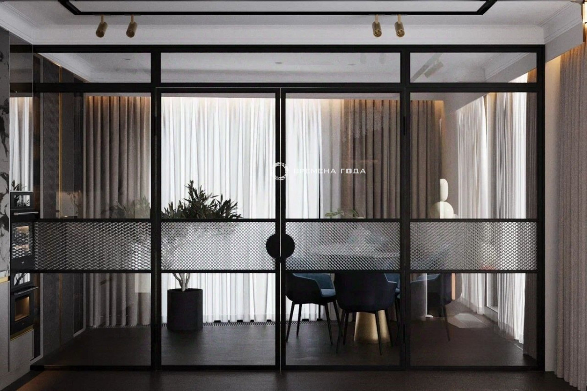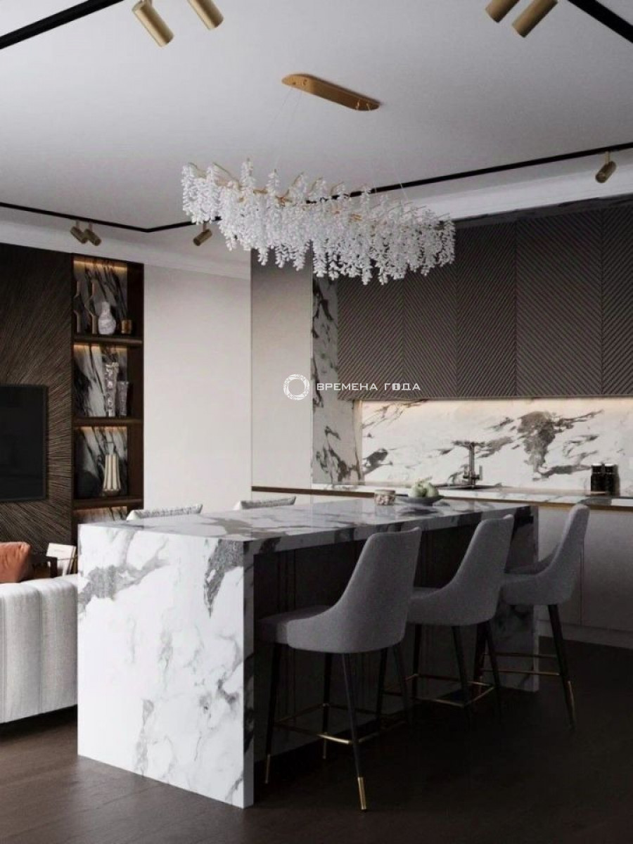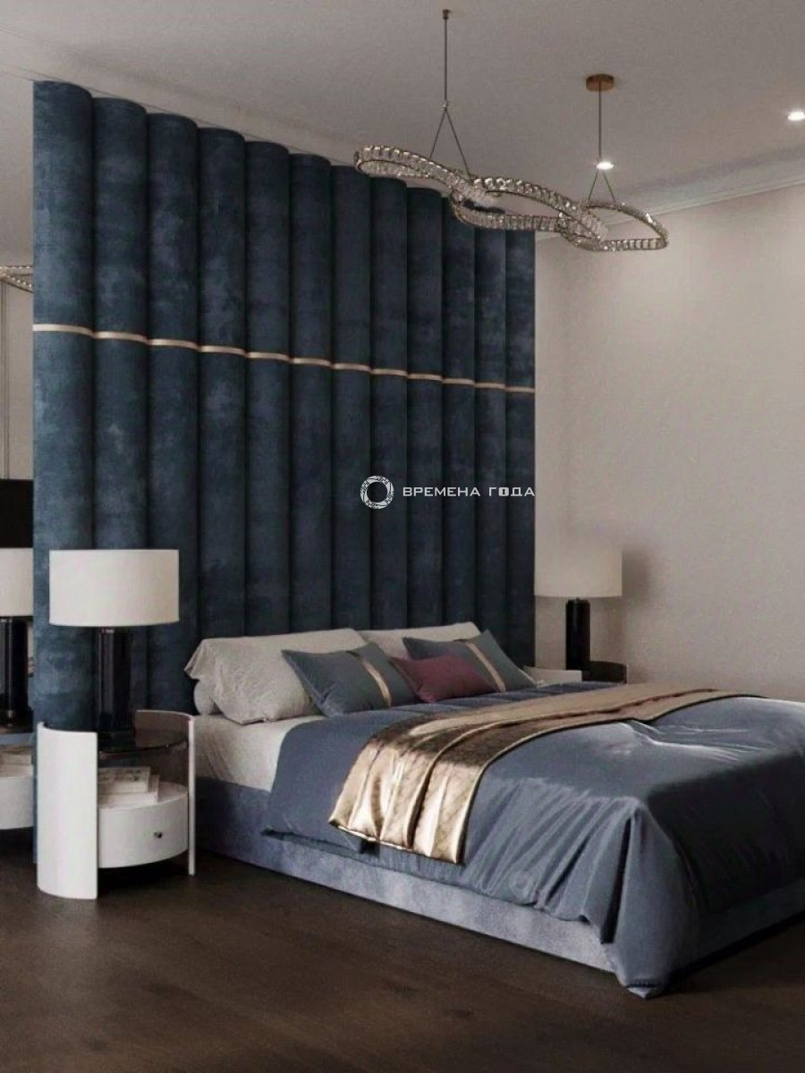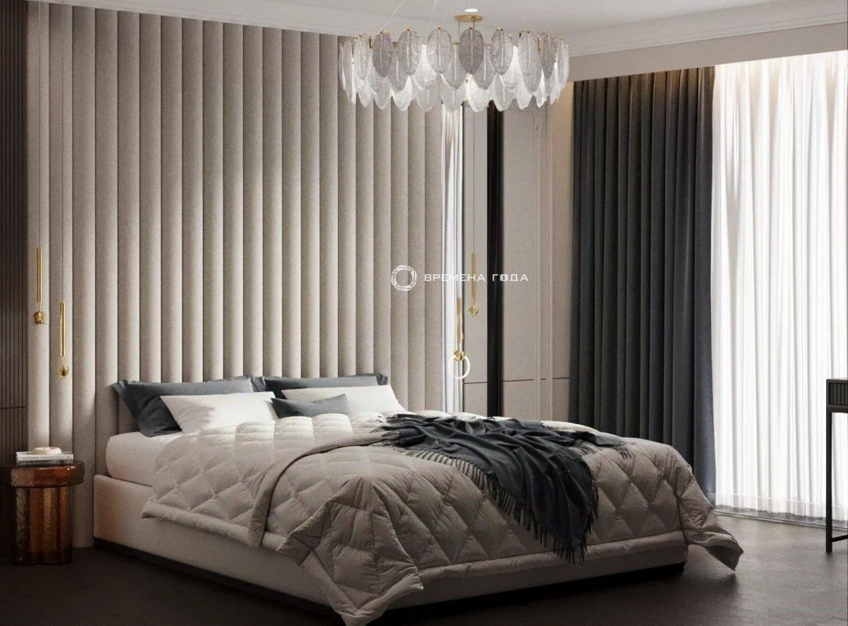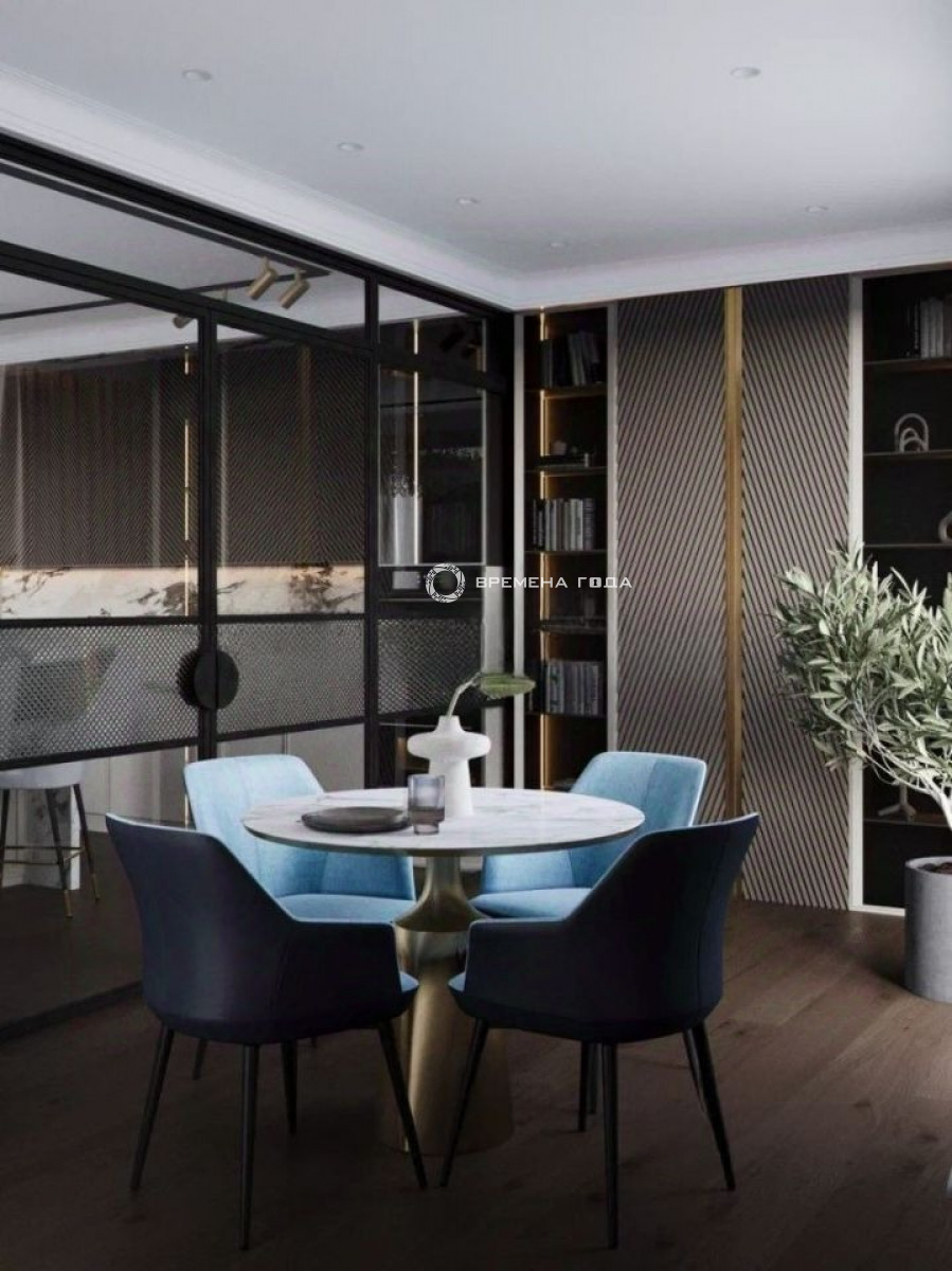 Планировочное решение: кухня с обеденной зоной и гостиной, столовая/кабинет, мастер-блок (спальня с гардеробной комнатой и своим санузлом), гостевая спальня, гостевой санузел, три гардеробные комнаты, постирочная комната