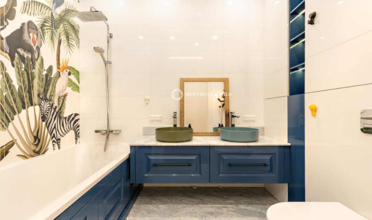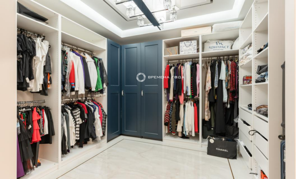 Планировочное решение: кухня с обеденной зоной и гостиной, мастер-спальня со своим санузлом и гардеробной комнатой, две детские спальни с санузлом и гардеробной, постирочная, кабинет, холл