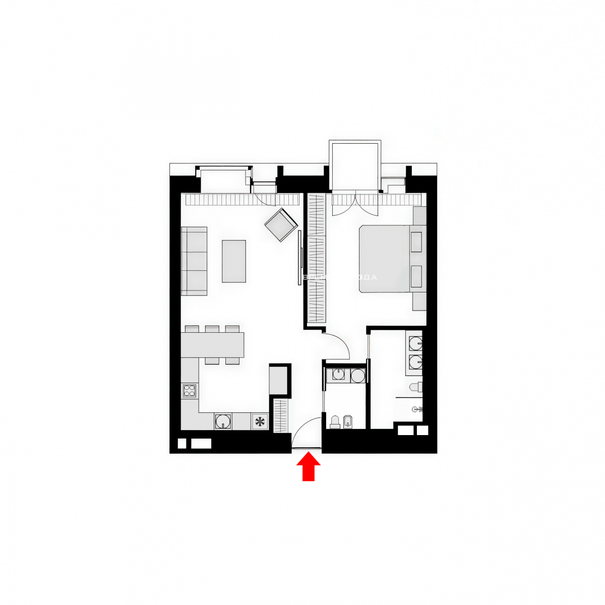 Планировочное решение: кухня с обеденной зоной и гостиной, спальня со своим санузлом, гостевой санузел/постирочная, прихожая.