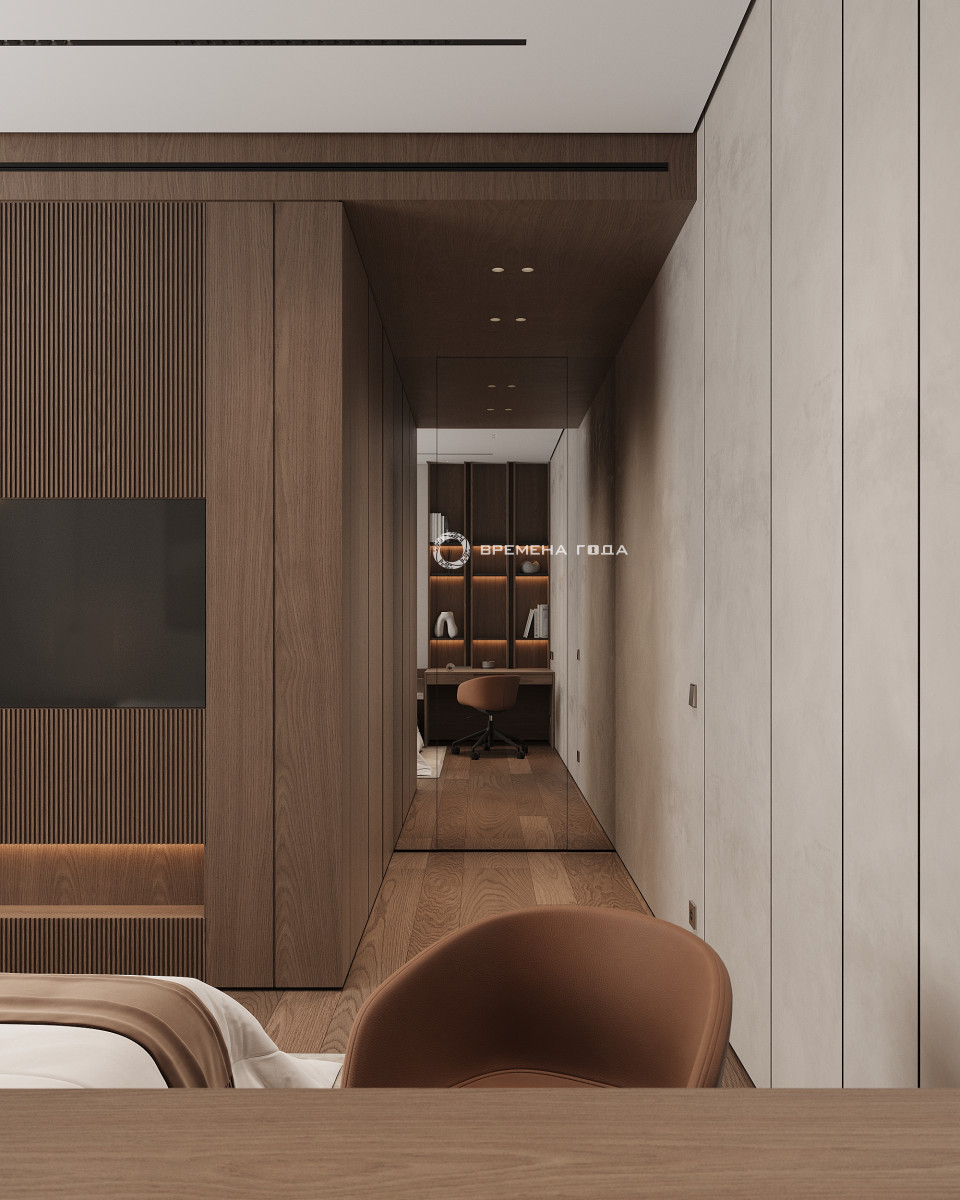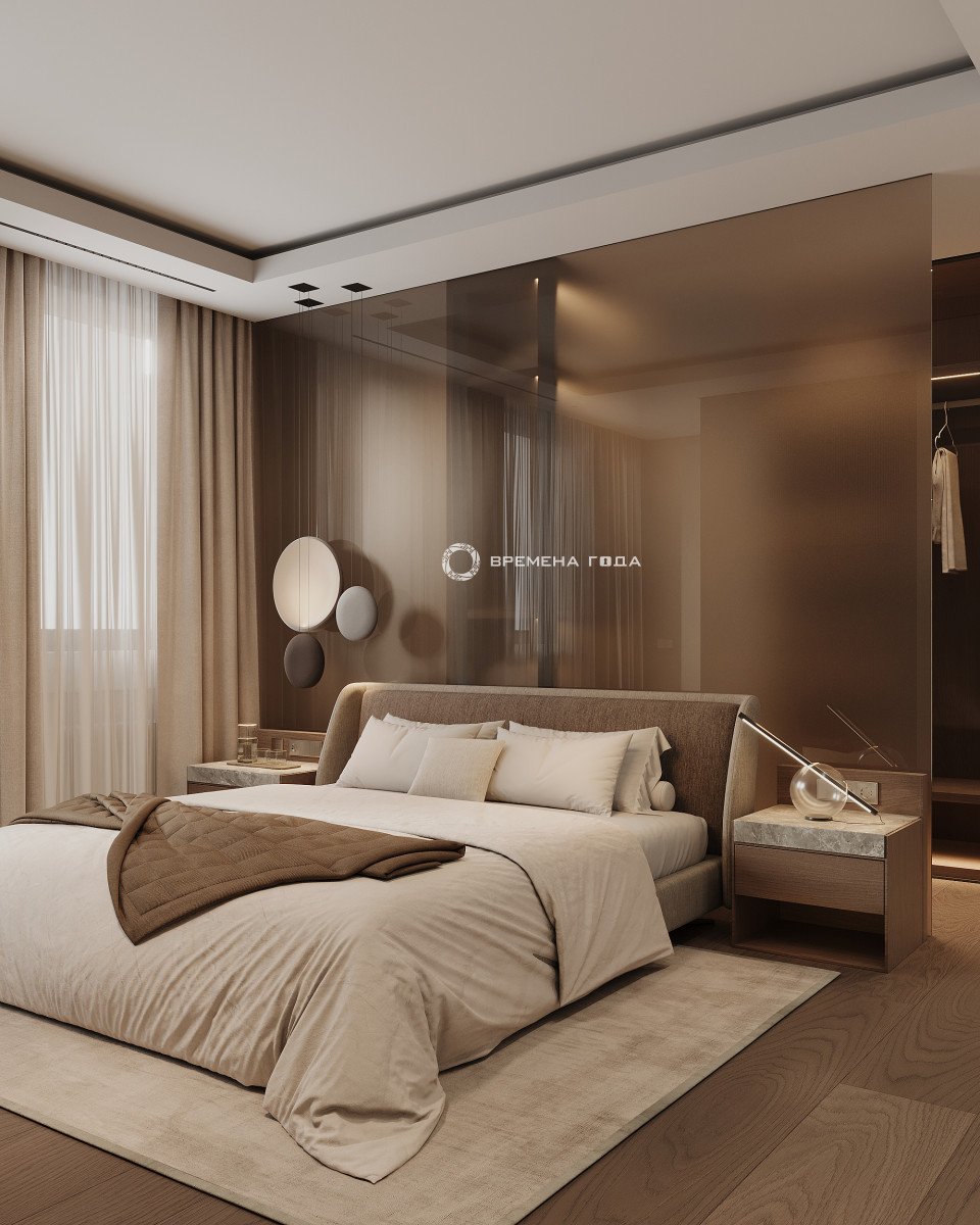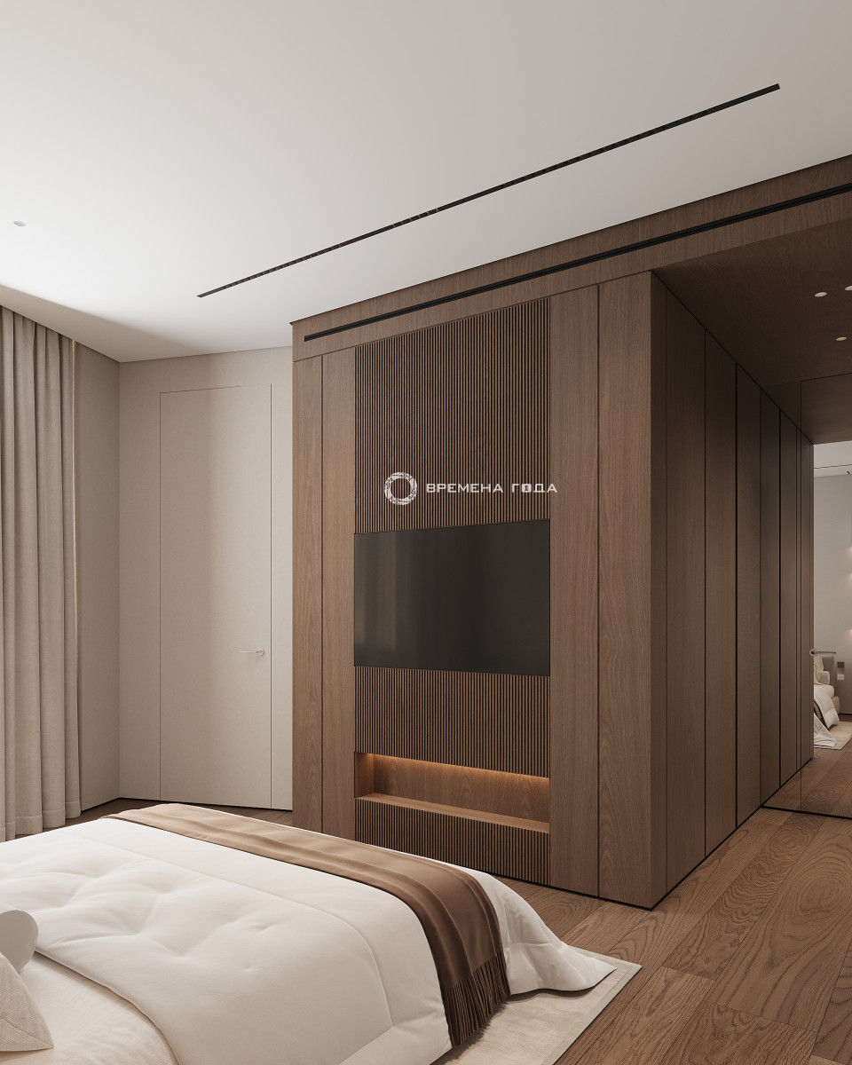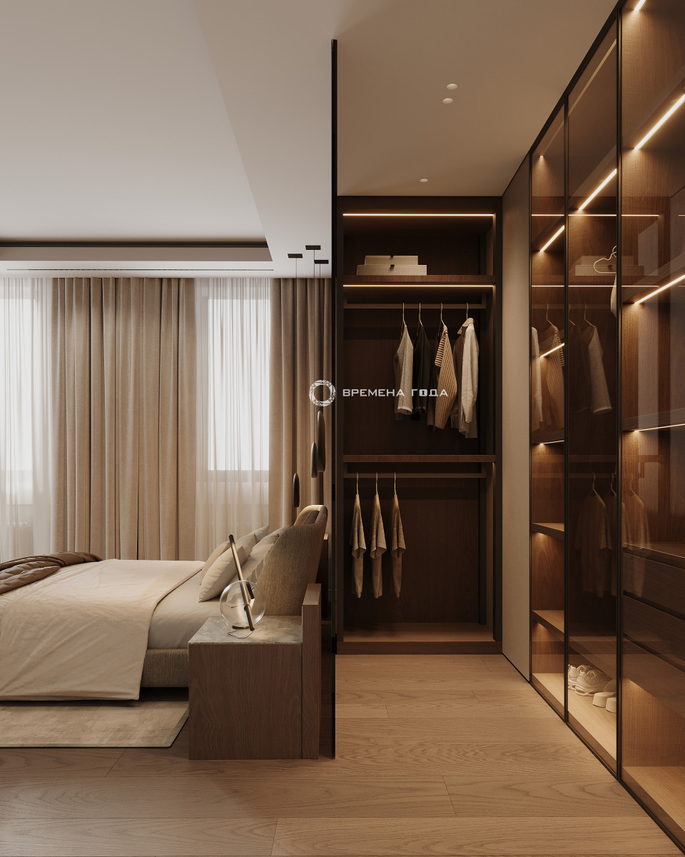 - Мастер спальня со своим санузлом (душевая) и гардеробной комнатой;