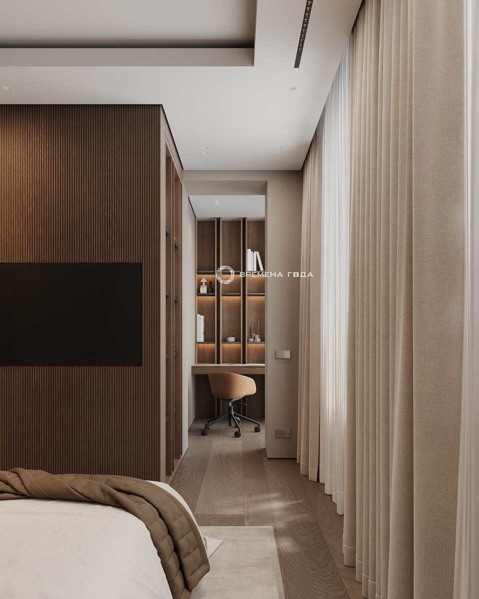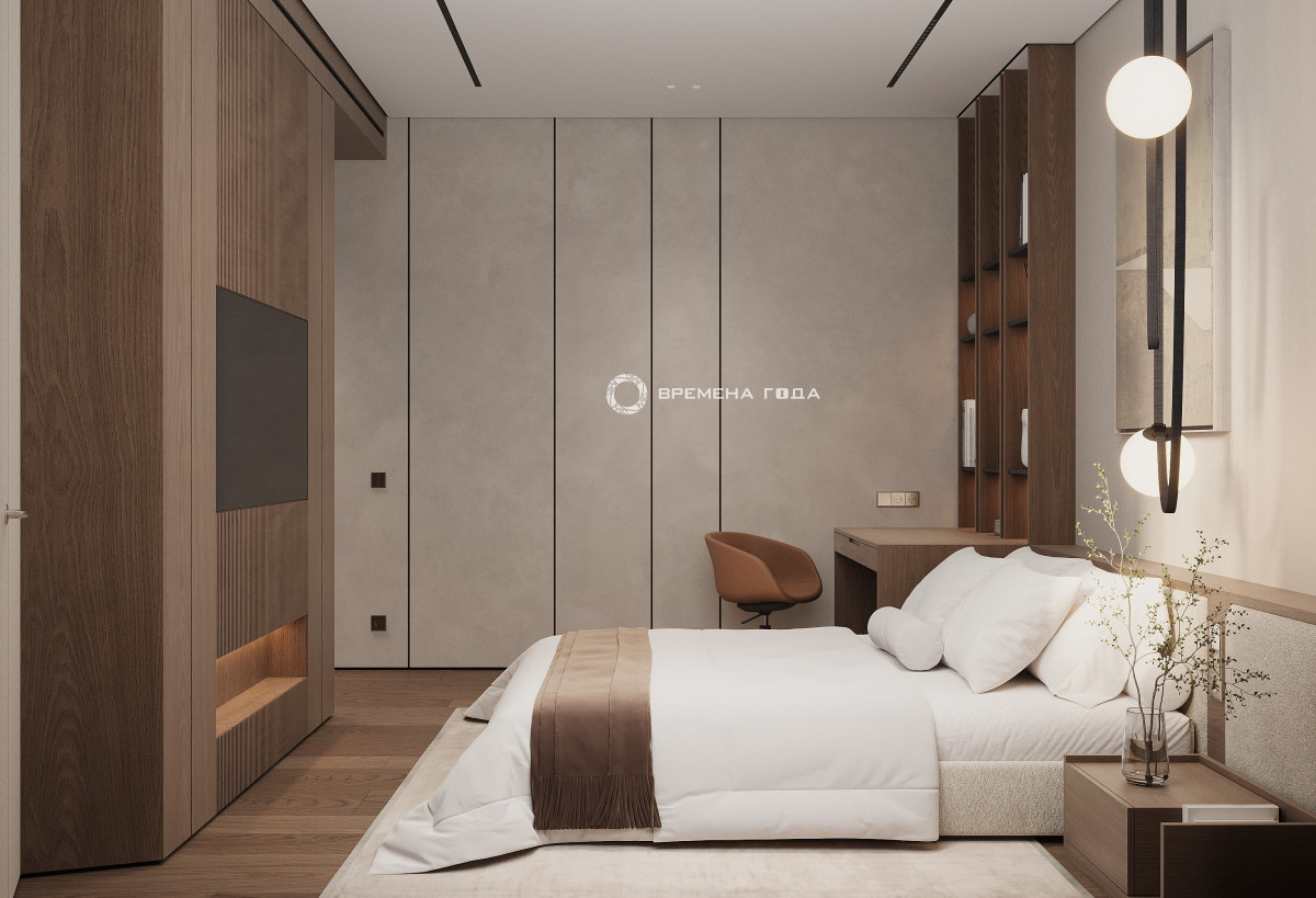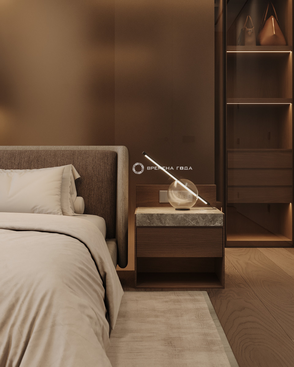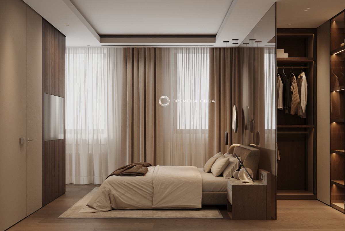 - Мастер спальня со своим санузлом (душевая) и гардеробной комнатой;