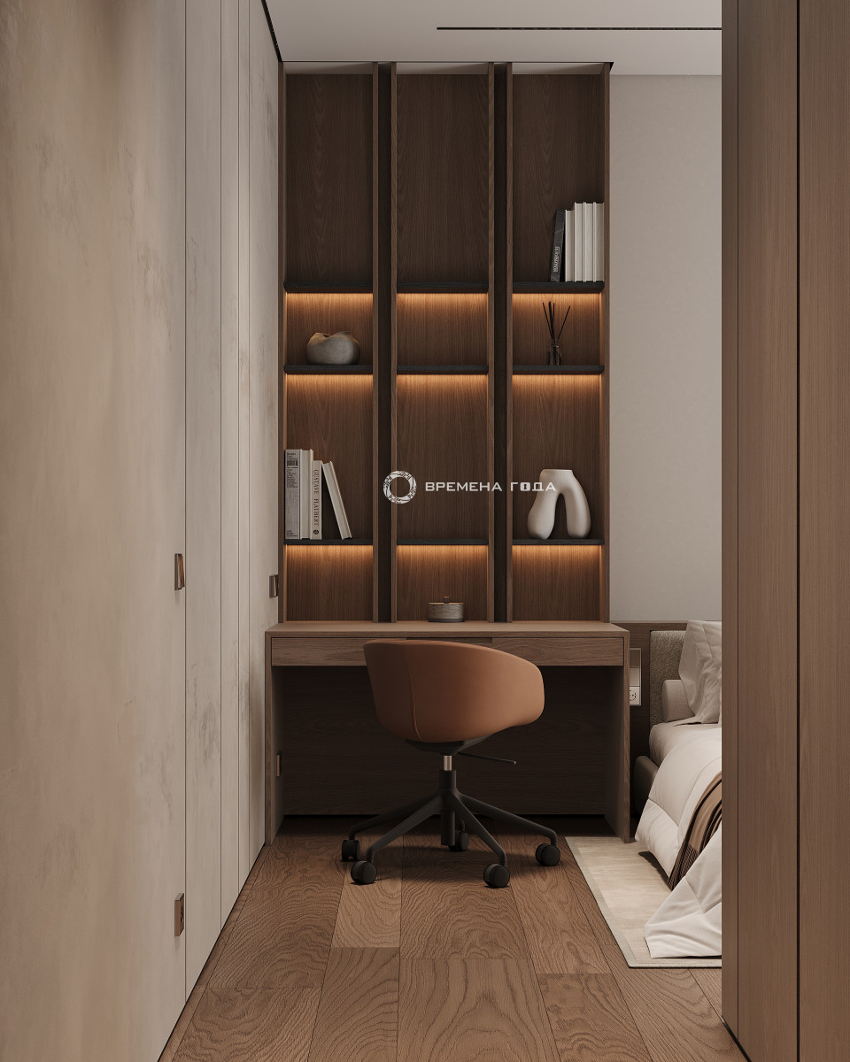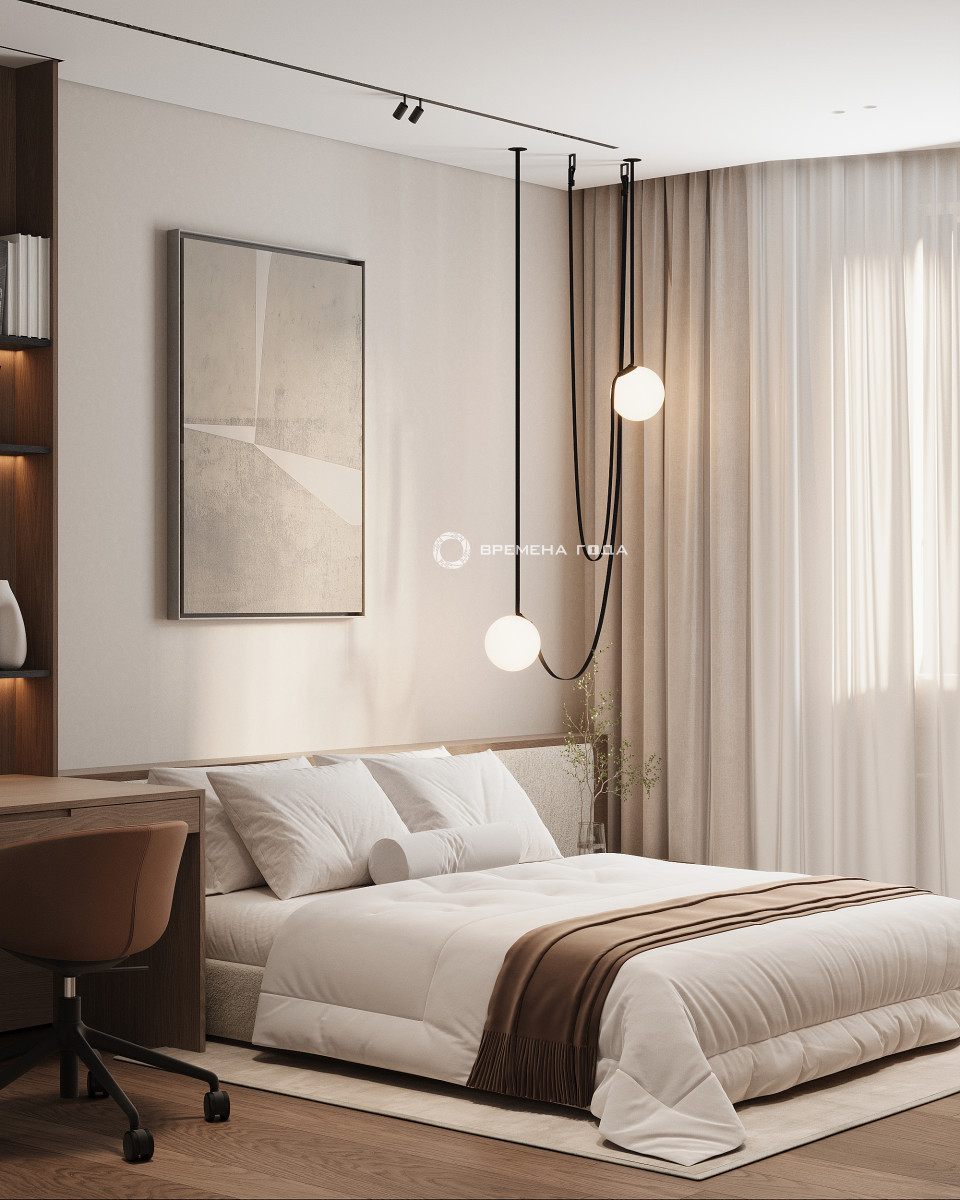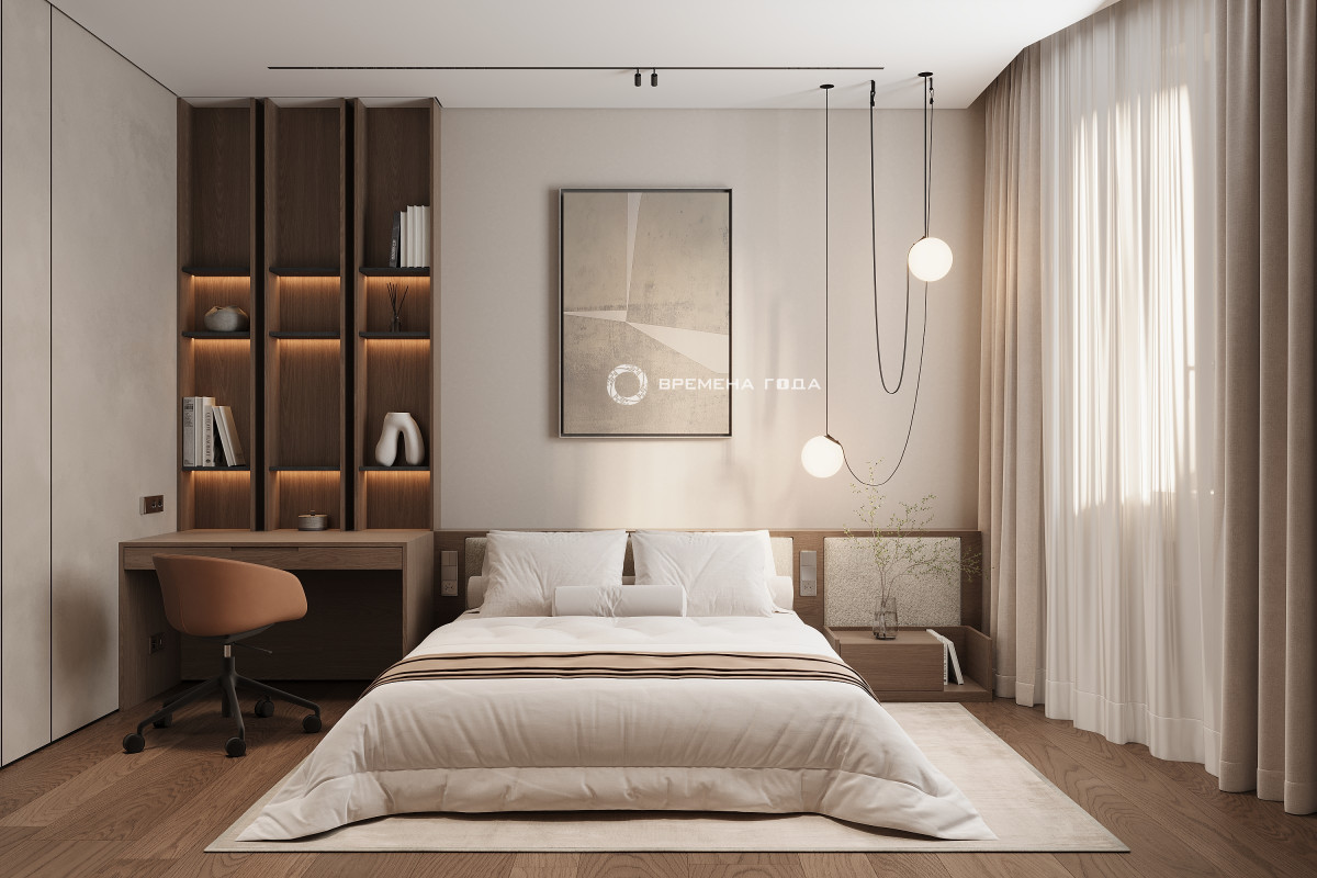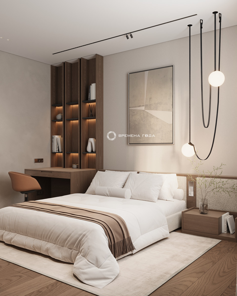- Мастер спальня со своим санузлом (душевая) и гардеробной комнатой;