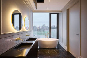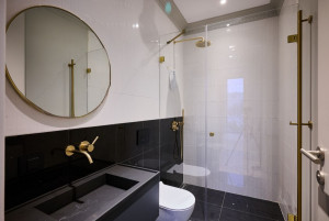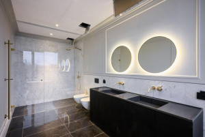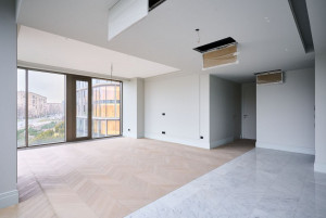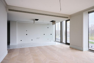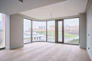 Свободная планировка: гостиная, кухня-столовая, три мастер-спальни со своими санузлами и гардеробными комнатами, два санузла, постирочная и гардеробная комнаты, холл
