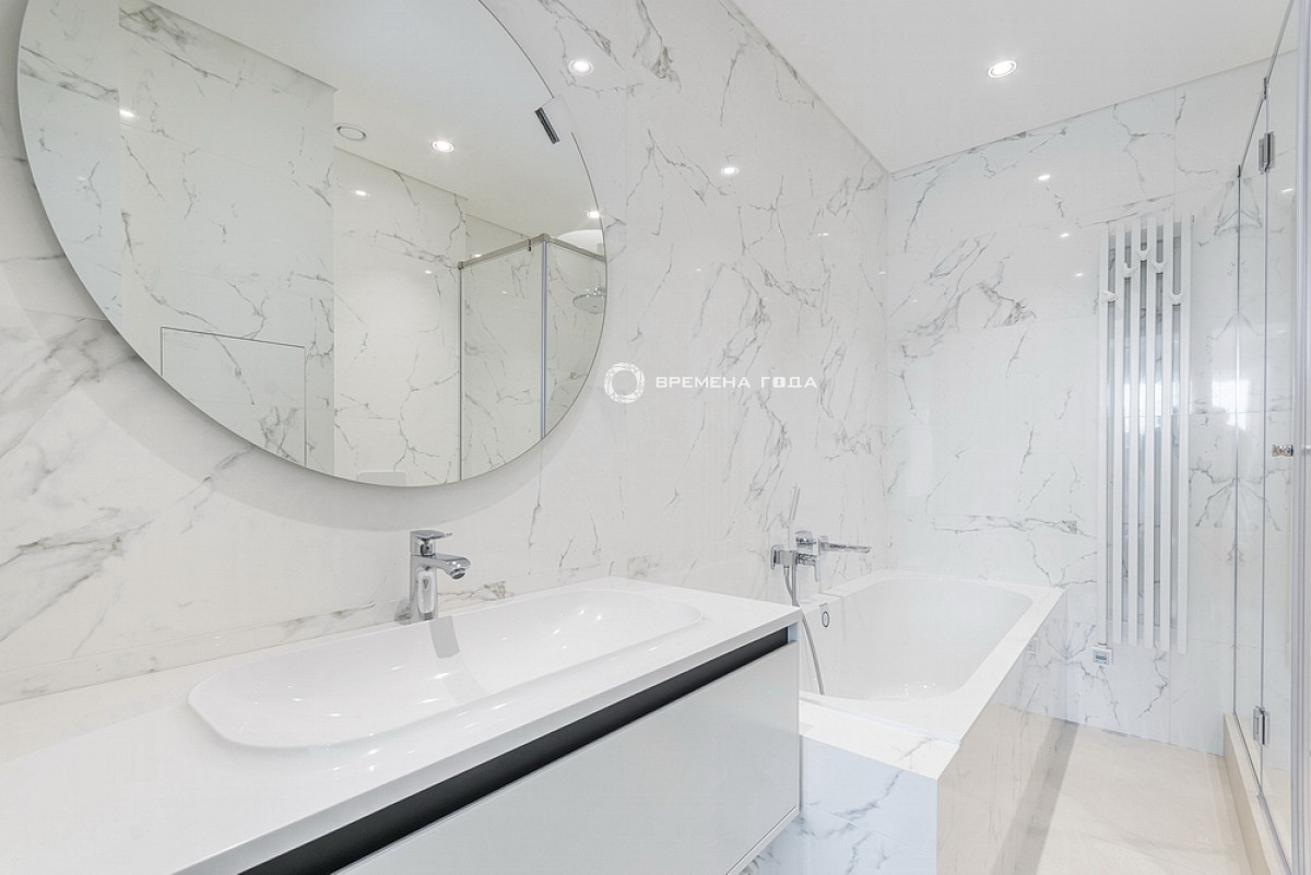 В квартире установлено: система приточно-вытяжной вентиляции с системой многоступенчатой фильтрации с подготовкой воздуха с рекуперацией "Systemair". Система кондиционирования Daikin. Внутрипольные конвекторы отопления, система автоматизации и регулировки по комнатам. Система усиления сигнала GSM. Система видеонаблюдения и домофонии Bas-ip. Система теплых полов Devi smart с управлением по Wi-Fi. Усиление Wi-Fi по комнатам. Бак для резервного горячего водоснабжения на 120 литров Stibel Eltron. Сантехника Villeroy Boch, Hansgrohe, Tece. Bio полы Disano от Haro. Керамогранит Arhskin. Кухня Leicht. Техника Neff. Электроустановочные изделия Abb и Jung.