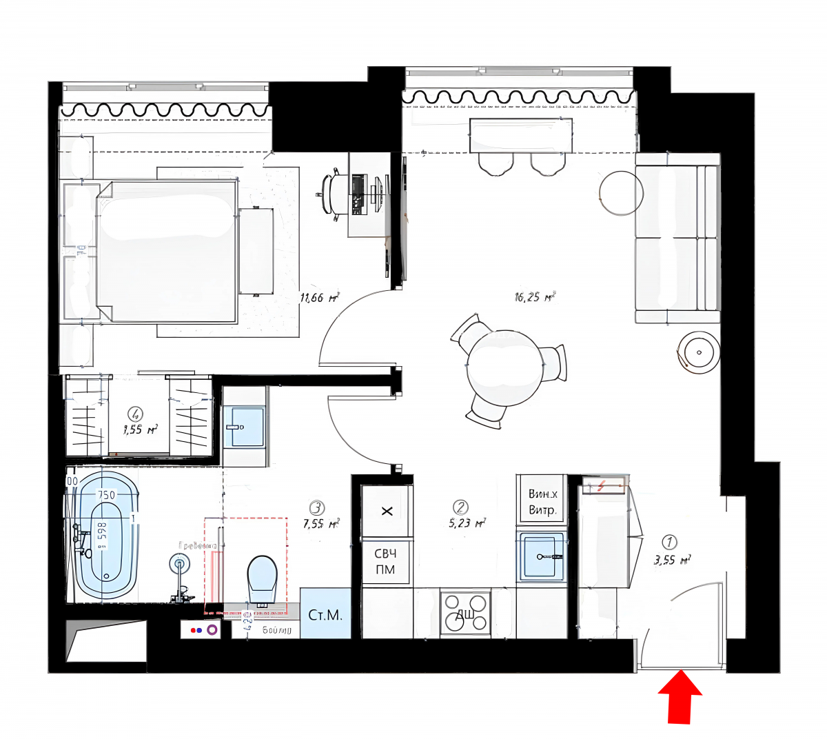 ОПИСАНИЕ КВАРТИРЫ - 16 ЭТАЖ, 45.1 КВ.М.
