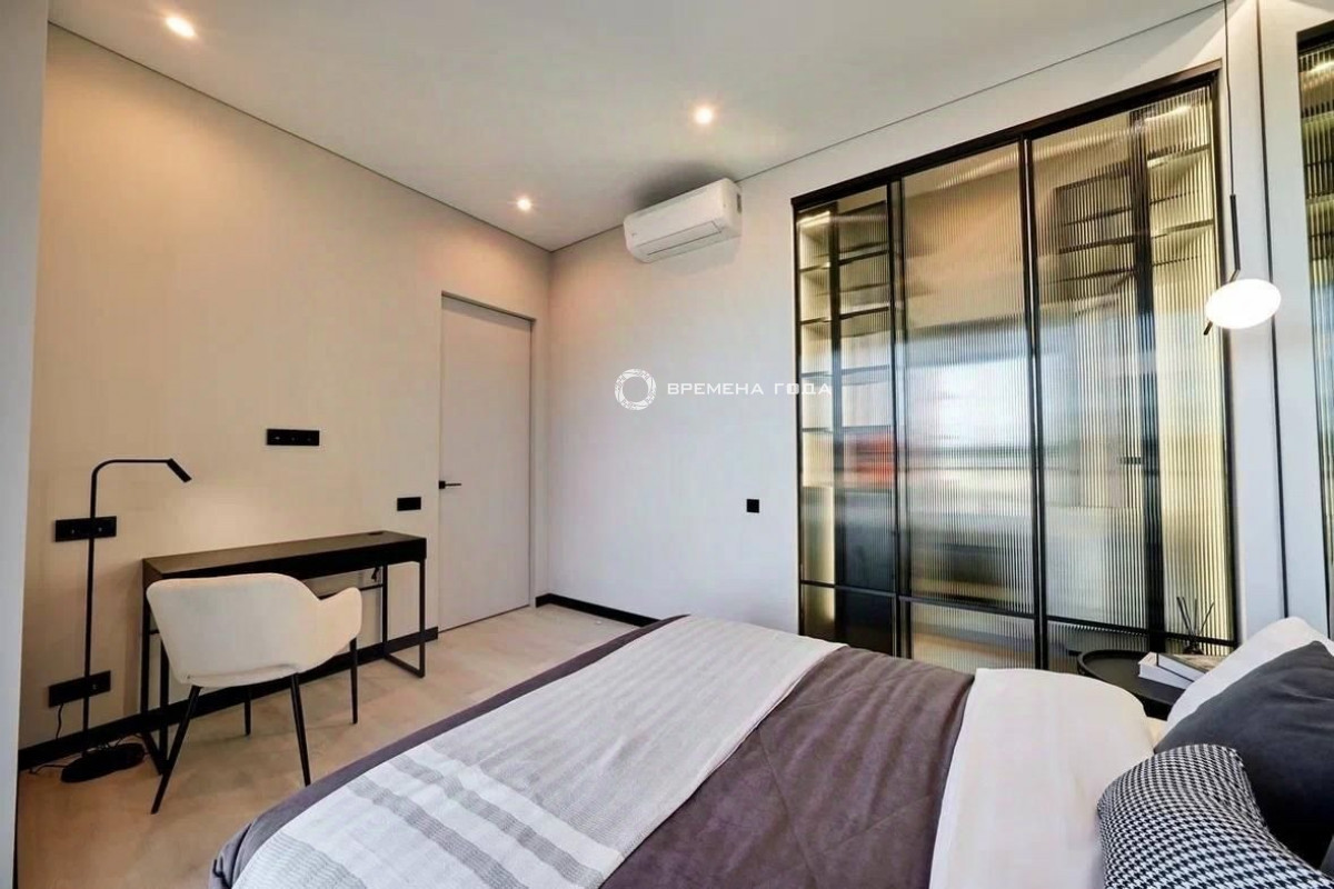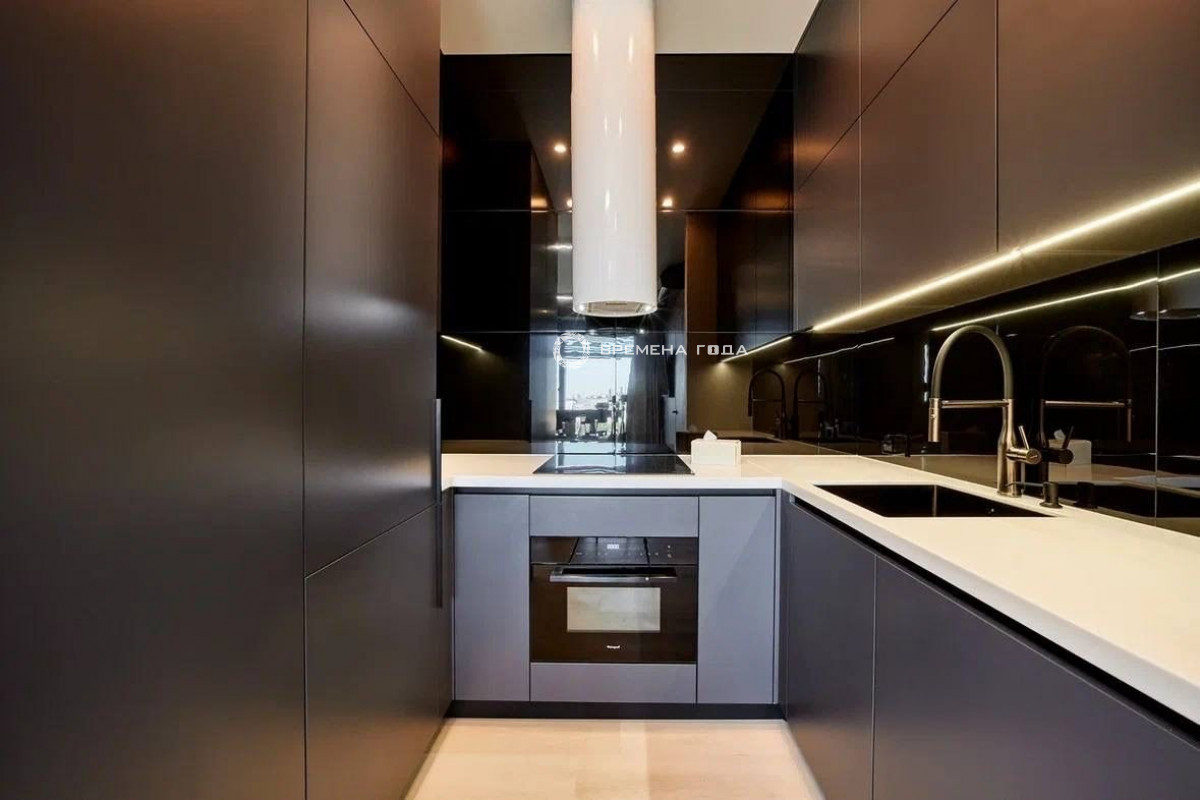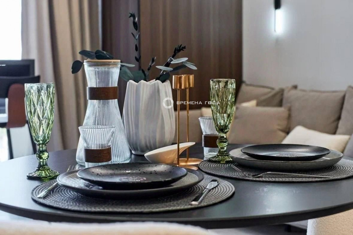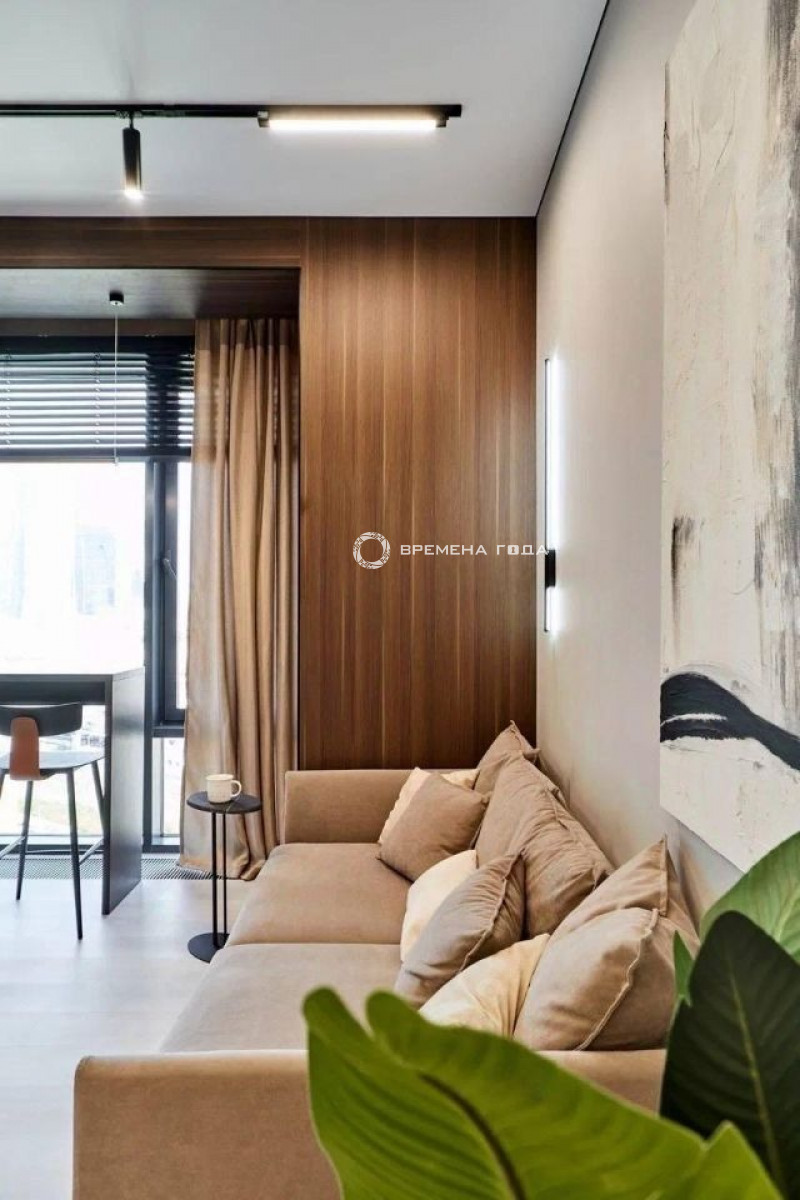 Планировочное решение: кухня с обеденной зоной и гостиной, изолированная спальня, санузел, гардеробная комната, прихожая