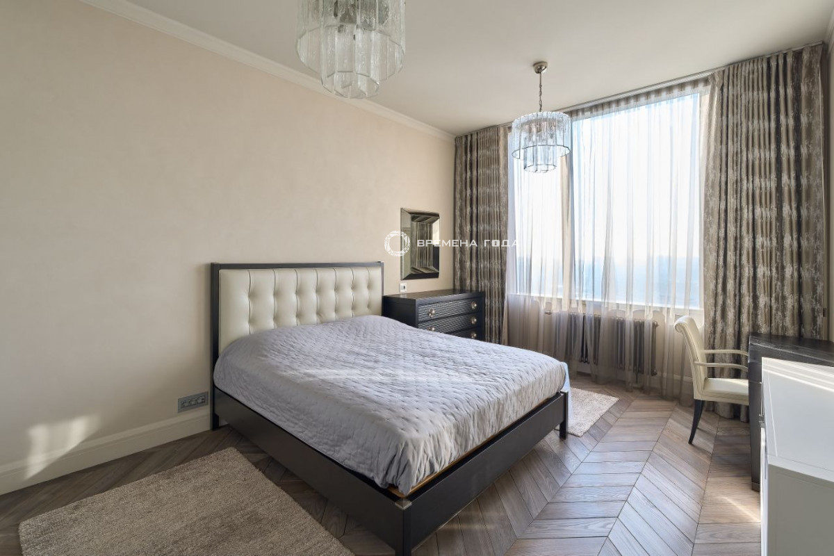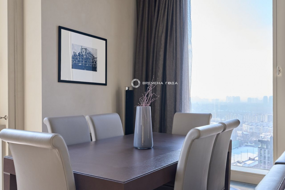 Вид в сторону МГУ, гольф клуб, огромный парк Воробьевы горы , Лужники , ухоженные поля для гольфа, историческую Поклонную гору и знаменитую киностудию "Мосфильм".