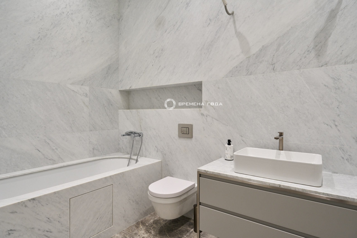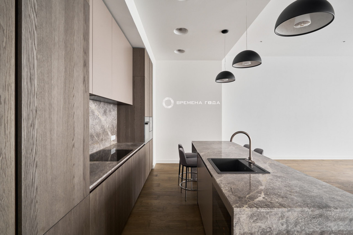 Кухня — от итальянского бренда Dada с использованием натурального камня. Полностью оборудованы ванные комнаты — бренды Villeroy & Boch, Kaldewei, Gessi.